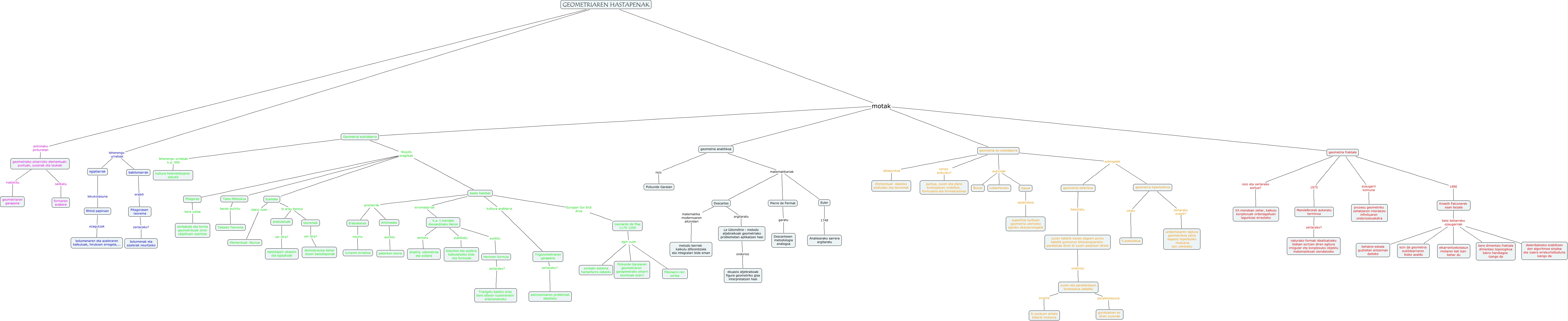 Este Cmap, tiene información relacionada con: Gorrochategui_Arrieta_Uxue 1, Arkimedes aurkitu palanken teoria, Euklides idatzi zuen Elementuak liburua, Descartes argitaratu La Géométrie: metodo aljebraikoak geometriako problemetan aplikatzen hasi, geometria ez-euklidearra abiapuntua Elementuak idazkiko postulatu eta teoremak, geometria ez-euklidearra aztergaiak geometria esferikoa, Gauss aipatzekoa superfizie kurboen geometria ulertzeko eginiko ekarpenengatik, Kneeth Falconerek esan bezala bete beharreko ezaugarriak behatze-eskala guztietan antzeman daiteke, Geometria euklidearra filosofo eragileak Tales Miletokoa, k.a. I.mendea Alexandriako Heron publikatu bolumen eta azalera kalkulatzeko bide eta formulak, Descartes matematika modernoaren aitzindari metodo berriek kalkulu diferentziala eta integralari bide eman, Heronen formula zertarako? Triangelu bateko area bere alboen luzeerarekin erlazionatzeko, geometria fraktala 1975 Mandelbrotek aukeratu terminoa, Trigonometriaren garapena zertarako? astronomiaren problemak ebazteko, babiloniarrak erabili Pitagorasen teorema, GEOMETRIAREN HASTAPENAK antzinako pinturetan geometriako oinarrizko elementuak: puntuak, zuzenak eta laukiak, egiptiarrak lekukotasuna Rhind papiroan, k.a. I.mendea Alexandriako Heron asmatu dioptra, odometroa eta eolipila, geometria analitikoa matematikariak Pierre de Fermat, GEOMETRIAREN HASTAPENAK motak Geometria euklidearra, Leonardo de Pisa 1170-1250 egin zuen zenbaki-sistema hamartarra zabaldu
