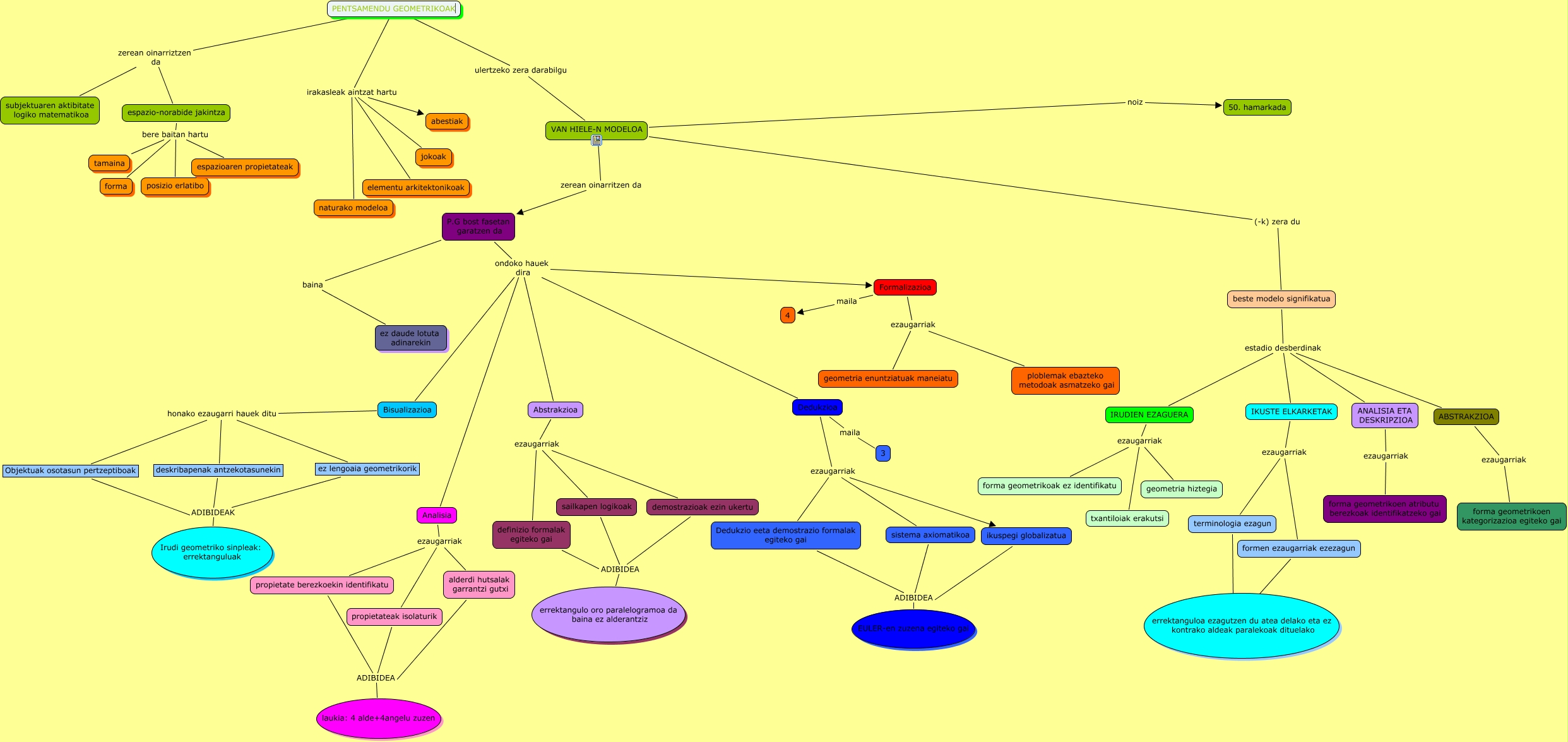 Este Cmap, tiene información relacionada con: Ozerinjauregi 2, alderdi hutsalak garrantzi gutxi ADIBIDEA laukia: 4 alde+4angelu zuzen, PENTSAMENDU GEOMETRIKOAK ulertzeko zera darabilgu VAN HIELE-N MODELOA, P.G bost fasetan garatzen da ondoko hauek dira Analisia, Abstrakzioa ezaugarriak demostrazioak ezin ukertu, sistema axiomatikoa ADIBIDEA EULER-en zuzena egiteko gai, formen ezaugarriak ezezagun ADIBIDEA errektanguloa ezagutzen du atea delako eta ez kontrako aldeak paralekoak dituelako, propietate berezkoekin identifikatu ADIBIDEA laukia: 4 alde+4angelu zuzen, ez lengoaia geometrikorik ADIBIDEAK Irudi geometriko sinpleak: errektanguluak, Formalizazioa ezaugarriak geometria enuntziatuak maneiatu, definizio formalak egiteko gai ADIBIDEA errektangulo oro paralelogramoa da baina ez alderantziz, espazio-norabide jakintza bere baitan hartu espazioaren propietateak, P.G bost fasetan garatzen da baina ez daude lotuta adinarekin, Dedukzioa ezaugarriak sistema axiomatikoa, espazio-norabide jakintza bere baitan hartu tamaina, Bisualizazioa honako ezaugarri hauek ditu deskribapenak antzekotasunekin, Bisualizazioa honako ezaugarri hauek ditu Objektuak osotasun pertzeptiboak, IRUDIEN EZAGUERA ezaugarriak geometria hiztegia, P.G bost fasetan garatzen da ondoko hauek dira Formalizazioa, IKUSTE ELKARKETAK ezaugarriak formen ezaugarriak ezezagun, beste modelo signifikatua estadio desberdinak ABSTRAKZIOA