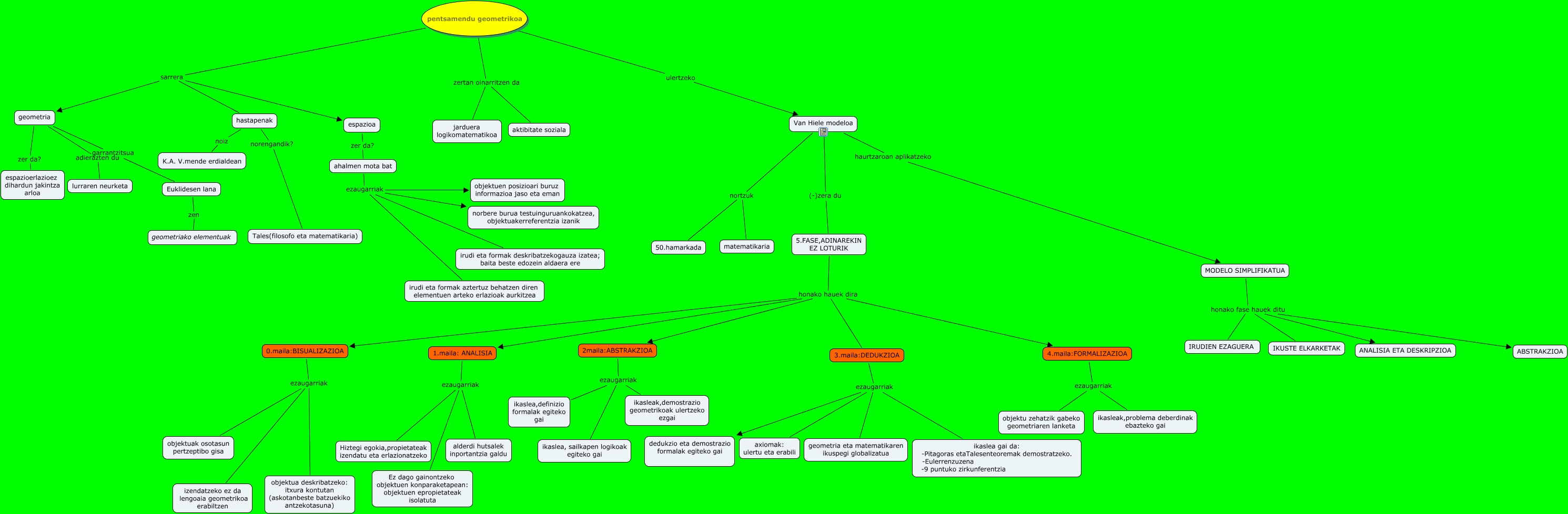 Este Cmap, tiene información relacionada con: Heras_Garin_2, hastapenak norengandik? Tales(filosofo eta matematikaria), espazioa zer da? ahalmen mota bat, Van Hiele modeloa nortzuk matematikaria, Euklidesen lana zen geometriako elementuak, 2maila:ABSTRAKZIOA ezaugarriak ikasleak,demostrazio geometrikoak ulertzeko ezgai, geometria zer da? espazioerlazioez dihardun jakintza arloa, 1.maila: ANALISIA ezaugarriak alderdi hutsalek inportantzia galdu, MODELO SIMPLIFIKATUA honako fase hauek ditu ANALISIA ETA DESKRIPZIOA, pentsamendu geometrikoa ulertzeko Van Hiele modeloa, 2maila:ABSTRAKZIOA ezaugarriak ikaslea, sailkapen logikoak egiteko gai, geometria adierazten du lurraren neurketa, 5.FASE,ADINAREKIN EZ LOTURIK honako hauek dira 0.maila:BISUALIZAZIOA, 5.FASE,ADINAREKIN EZ LOTURIK honako hauek dira 2maila:ABSTRAKZIOA, Van Hiele modeloa nortzuk 50.hamarkada, ahalmen mota bat ezaugarriak norbere burua testuinguruankokatzea, objektuakerreferentzia izanik, Van Hiele modeloa (-)zera du 5.FASE,ADINAREKIN EZ LOTURIK, 5.FASE,ADINAREKIN EZ LOTURIK honako hauek dira 4.maila:FORMALIZAZIOA, MODELO SIMPLIFIKATUA honako fase hauek ditu ABSTRAKZIOA, geometria garrantzitsua Euklidesen lana, ahalmen mota bat ezaugarriak objektuen posizioari buruz informazioa jaso eta eman