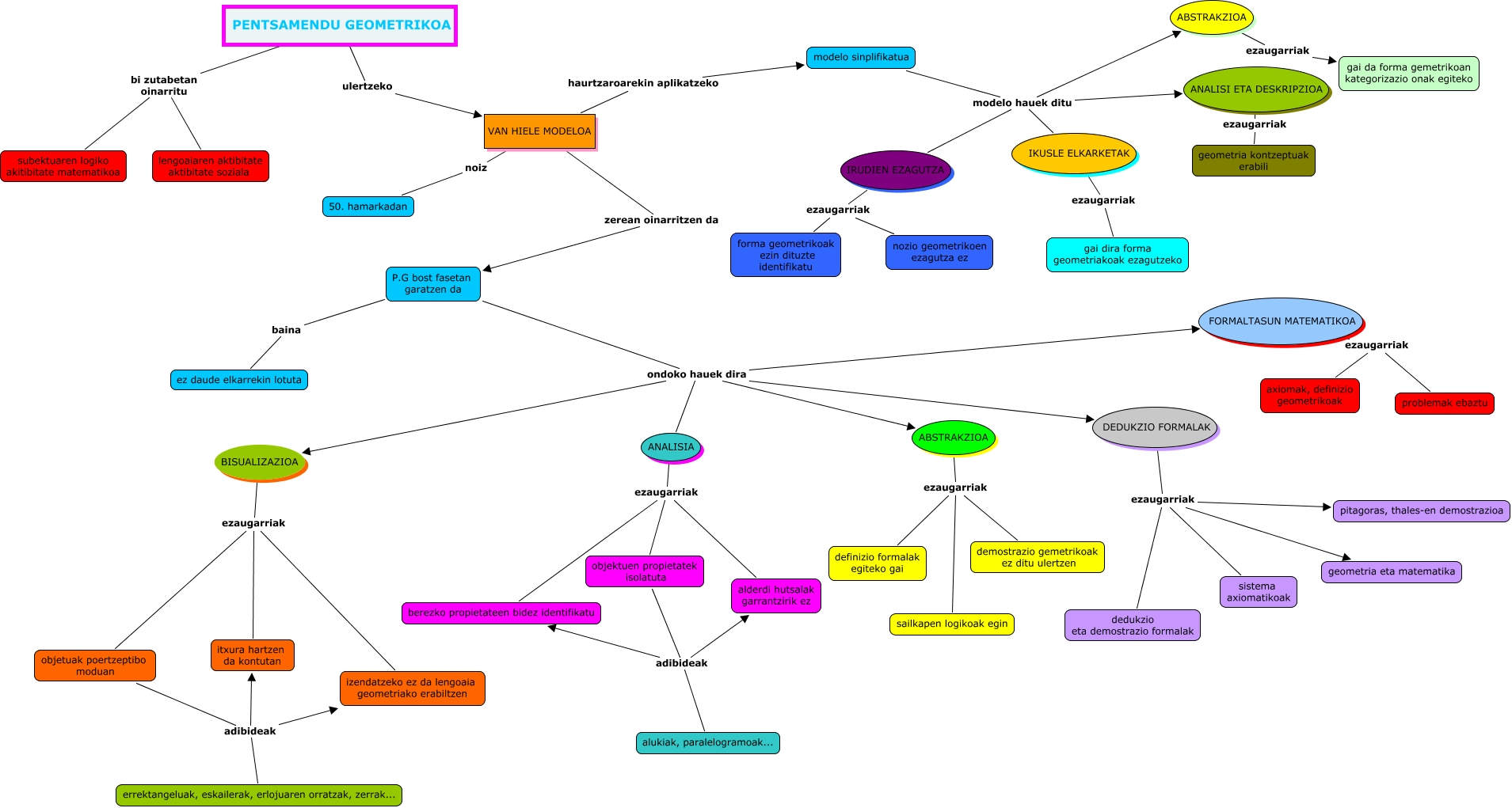 Este Cmap, tiene información relacionada con: illarramendi_olazabal_maider2, PENTSAMENDU GEOMETRIKOA bi zutabetan oinarritu lengoaiaren aktibitate aktibitate soziala, P.G bost fasetan garatzen da baina ez daude elkarrekin lotuta, P.G bost fasetan garatzen da ondoko hauek dira FORMALTASUN MATEMATIKOA, objetuak poertzeptibo moduan adibideak itxura hartzen da kontutan, objektuen propietatek isolatuta adibideak alderdi hutsalak garrantzirik ez, BISUALIZAZIOA ezaugarriak izendatzeko ez da lengoaia geometriako erabiltzen, ABSTRAKZIOA ezaugarriak demostrazio gemetrikoak ez ditu ulertzen, PENTSAMENDU GEOMETRIKOA ulertzeko VAN HIELE MODELOA, ANALISIA ezaugarriak berezko propietateen bidez identifikatu, VAN HIELE MODELOA zerean oinarritzen da P.G bost fasetan garatzen da, IRUDIEN EZAGUTZA ezaugarriak nozio geometrikoen ezagutza ez, objektuen propietatek isolatuta adibideak berezko propietateen bidez identifikatu, PENTSAMENDU GEOMETRIKOA bi zutabetan oinarritu subektuaren logiko akitibitate matematikoa, DEDUKZIO FORMALAK ezaugarriak sistema axiomatikoak, objektuen propietatek isolatuta adibideak alukiak, paralelogramoak..., objetuak poertzeptibo moduan adibideak errektangeluak, eskailerak, erlojuaren orratzak, zerrak..., modelo sinplifikatua modelo hauek ditu ANALISI ETA DESKRIPZIOA, BISUALIZAZIOA ezaugarriak itxura hartzen da kontutan, ANALISIA ezaugarriak alderdi hutsalak garrantzirik ez, FORMALTASUN MATEMATIKOA ezaugarriak axiomak, definizio geometrikoak