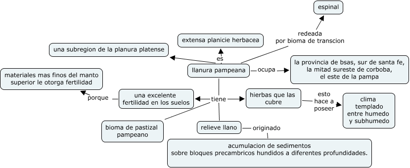 Este mapa conceptual tiene información relacionada a: agus tp llanura pampeana, llanura pampeana redeada por bioma de transcion espinal, llanura pampeana tiene bioma de pastizal pampeano, llanura pampeana tiene una excelente fertilidad en los suelos, llanura pampeana es extensa planicie herbacea, llanura pampeana es una subregion de la planura platense, llanura pampeana tiene relieve llano, relieve llano originado acumulacion de sedimentos sobre bloques precambricos hundidos a diferentes profundidades., hierbas que las cubre esto hace a poseer clima templado entre humedo y subhumedo, llanura pampeana tiene hierbas que las cubre, una excelente fertilidad en los suelos porque materiales mas finos del manto superior le otorga fertilidad