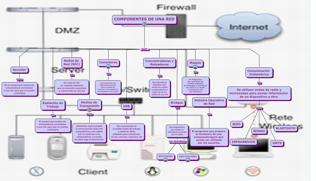 Este mapa conceptual tiene información relacionada a: yare, USB es Son conexiones en la tarjeta madre de entrada y salida de datos utilizadas para conexiones de red, camaras, scanners, etc, Servidor son Bridges, Nodos de Red (NIC) son Conectores, Se utilizan ondas de radio y microondas para enviar información de un dispositivo a otro. son UMTS, Sistema Operativo de Red es El programa que prepara el hardware de una computadorapara que pueda ser utilizada por los usuarios., Servidor son Concentradores y Ruteadores, Esatación de Trabajo son Comunicación Inalambrica, Se utilizan ondas de radio y microondas para enviar información de un dispositivo a otro. son WIMAX, Medios de Transmisión son Concentradores y Ruteadores, Esatación de Trabajo son Conectores, Medios de Transmisión son Sistema Operativo de Red, Nodos de Red (NIC) son Modem, Nodos de Red (NIC) son Sistema Operativo de Red, Nodos de Red (NIC) son USB, Nodos de Red (NIC) son Bridges, Servidor son Conectores, Medios de Transmisión son Bridges, Esatación de Trabajo son USB, Medios de Transmisión son USB, Concentradores y Ruteadores es Son dipositivos utilizados para recibir los cables correpondientes a cada uno de los nodos de una red