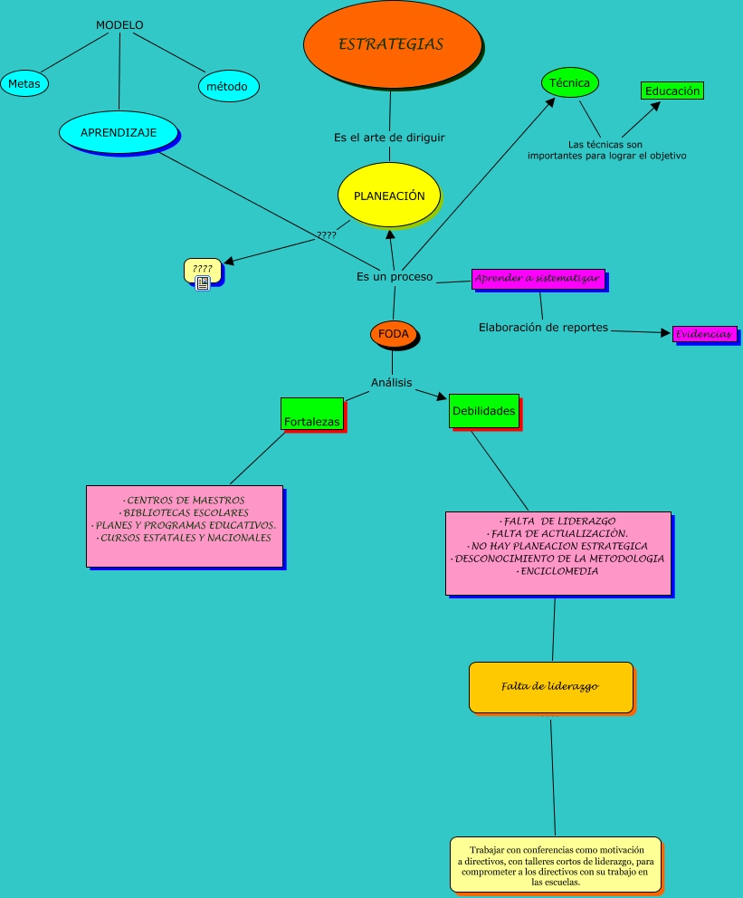 Este Cmap, tiene información relacionada con: ACT.4 Y5, FODA Análisis Fortalezas, método MODELO APRENDIZAJE, Aprender a sistematizar Es un proceso PLANEACIÓN, APRENDIZAJE Es un proceso Técnica, Debilidades ???? • FALTA DE LIDERAZGO • FALTA DE ACTUALIZACIÓN. • NO HAY PLANEACION ESTRATEGICA • DESCONOCIMIENTO DE LA METODOLOGIA • ENCICLOMEDIA, Fortalezas ???? • CENTROS DE MAESTROS • BIBLIOTECAS ESCOLARES • PLANES Y PROGRAMAS EDUCATIVOS. • CURSOS ESTATALES Y NACIONALES, APRENDIZAJE Es un proceso PLANEACIÓN, APRENDIZAJE Es un proceso FODA, PLANEACIÓN ???? ????, • FALTA DE LIDERAZGO • FALTA DE ACTUALIZACIÓN. • NO HAY PLANEACION ESTRATEGICA • DESCONOCIMIENTO DE LA METODOLOGIA • ENCICLOMEDIA ???? Falta de liderazgo, Falta de liderazgo ???? Trabajar con conferencias como motivación a directivos, con talleres cortos de liderazgo, para comprometer a los directivos con su trabajo en las escuelas., Aprender a sistematizar Elaboración de reportes Evidencias, ESTRATEGIAS Es el arte de diriguir PLANEACIÓN, método MODELO Metas, FODA Análisis Debilidades, Aprender a sistematizar Es un proceso Técnica, Técnica Las técnicas son importantes para lograr el objetivo Educación, Aprender a sistematizar Es un proceso FODA