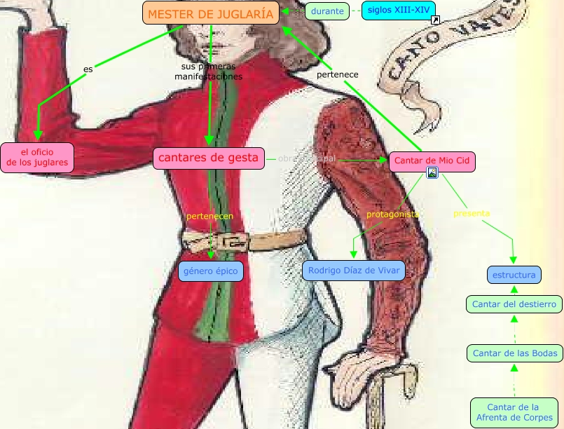 Este Cmap, tiene información relacionada con: index 2, MESTER DE JUGLARÍA sus primeras manifestaciones cantares de gesta, MESTER DE JUGLARÍA es el oficio de los juglares, siglos XIII-XIV MESTER DE JUGLARÍA, Cantar de la Afrenta de Corpes Cantar de las Bodas, Cantar de Mio Cid protagonista Rodrigo Díaz de Vivar, Cantar de las Bodas Cantar del destierro, Cantar de la Afrenta de Corpes Cantar de las Bodas, Cantar de Mio Cid presenta estructura, cantares de gesta obra principal Cantar de Mio Cid, Cantar del destierro estructura, siglos XIII-XIV durante, cantares de gesta pertenecen género épico, Cantar de Mio Cid pertenece MESTER DE JUGLARÍA