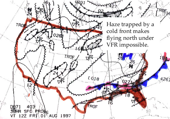 Esse mapa conceitual, produzido no IHMC CmapTools, tem a informação relacionada a: Ceiling and Visibility, Instrument Meteorological Conditions (IMC) require either 1000-ft ceiling, Weather Summary Chart produced by National Weather Service, Local weather conditions and phenomena include Stationary fronts on Gulf coast, Ceiling and visibility unique data types include IR and Visible GOES images, Clear, cool nights following precipitation in Low-lying areas, Visual Meteorological Conditions require 3000 ft. ceiling and 3 miles visibility, Text data consists of World-wide observations and TAFs, Clear, cool nights following precipitation near Bodies of water, Local weather conditions and phenomena include Slow-moving cold fronts, Advection fog and low ceiling at and along the front is due to Onshore flow off of the Gulf, "Marginal" conditions are 1000-3000 ft ceiling and 1-3 mile visibility, Ceiling and Visibility have operational definitions including Visual Meteorological Conditions, Text data from Automated Weather Network (AWN), Ceiling and Visibility are negatively impacted by Local weather conditions and phenomena, Ceiling and Visibility have operational definitions including Instrument Meteorological Conditions (IMC), "Marginal" conditions allow for VFR or IFR, Slow-moving cold fronts occur more often in Winter, IR and Visible GOES images overlayed with symbology for Visual Meteorological Conditions, Local weather conditions and phenomena include Thunderstorms, Stationary fronts on Gulf coast can cause Advection fog and low ceiling at and along the front