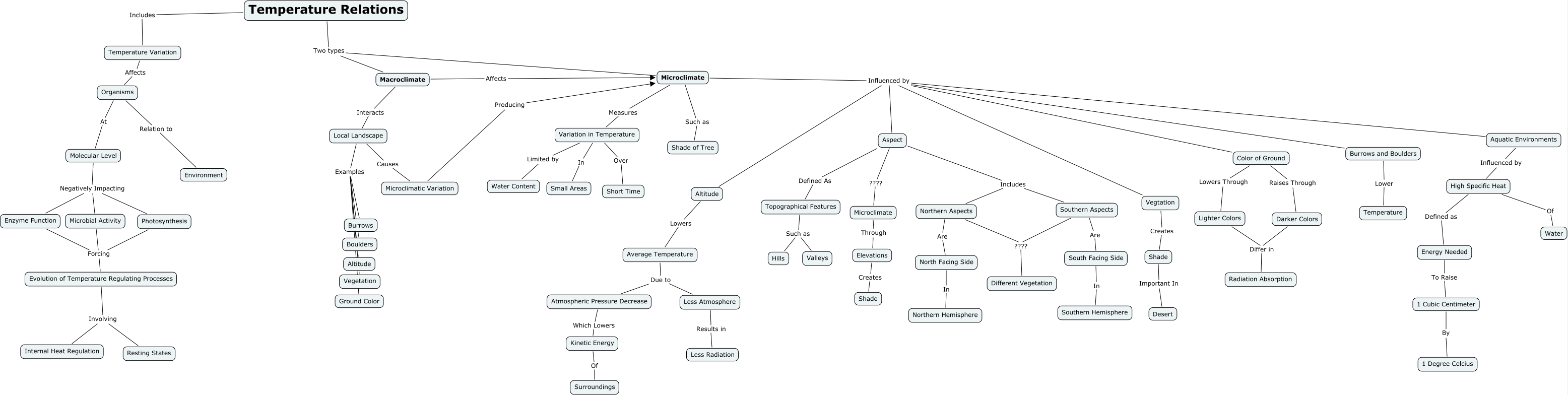 Andrew & Drew first for Mostrom, Photosynthesis Forcing Evolution of Temperature Regulating Processes, Darker Colors Differ in Radiation Absorption, Evolution of Temperature Regulating Processes Involving Resting States, Atmospheric Pressure Decrease Which Lowers Kinetic Energy, Local Landscape Examples Altitude, 1 Cubic Centimeter By 1 Degree Celcius, Temperature Relations Two types Macroclimate, Aspect Includes Northern Aspects, Kinetic Energy Of Surroundings, Southern Aspects Are South Facing Side