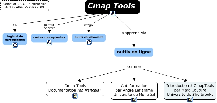 Cette carte conceptuelle, cree avec IHMC CmapTools, contient des informations liees a : Formation Cmap part4, Cmap Tools intègre outils collaboratifs, Cmap Tools est logiciel de cartographie, Cmap Tools permet de créer cartes conceptuelles, outils en ligne comme Cmap Tools Documentation (en français), Cmap Tools s'apprend via outils en ligne, outils en ligne comme Introduction à CmapTools par Marc Couture Université de Sherbrooke, outils en ligne comme Autoformation par André Laflamme Université de Montréal