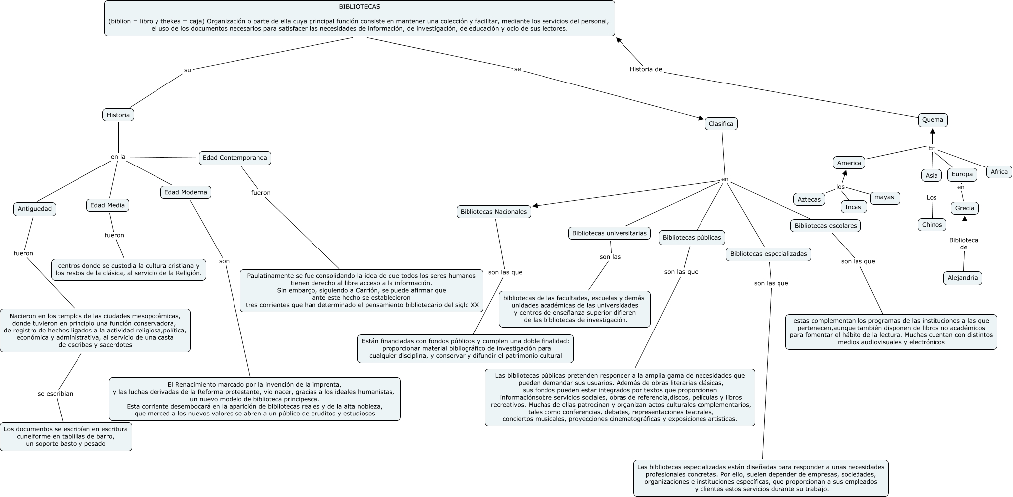 Este Cmap, tiene información relacionada con: Bibliotecas, Clasifica en Bibliotecas especializadas, America En Quema, Asia Los Chinos, Historia en la Edad Moderna, Nacieron en los templos de las ciudades mesopotámicas, donde tuvieron en principio una función conservadora, de registro de hechos ligados a la actividad religiosa,política, económica y administrativa, al servicio de una casta de escribas y sacerdotes se escribian Los documentos se escribían en escritura cuneiforme en tablillas de barro, un soporte basto y pesado, Edad Media en la Edad Moderna, Edad Media fueron centros donde se custodia la cultura cristiana y los restos de la clásica, al servicio de la Religión., mayas los America, Bibliotecas universitarias son las bibliotecas de las facultades, escuelas y demás unidades académicas de las universidades y centros de enseñanza superior difieren de las bibliotecas de investigación., Edad Contemporanea fueron Paulatinamente se fue consolidando la idea de que todos los seres humanos tienen derecho al libre acceso a la información. Sin embargo, siguiendo a Carrión, se puede afirmar que ante este hecho se establecieron tres corrientes que han determinado el pensamiento bibliotecario del siglo XX, Clasifica en Bibliotecas universitarias, Bibliotecas Nacionales son las que Están financiadas con fondos públicos y cumplen una doble finalidad: proporcionar material bibliográfico de investigación para cualquier disciplina, y conservar y difundir el patrimonio cultural, Europa En Quema, Antiguedad en la Edad Moderna, Bibliotecas escolares son las que estas complementan los programas de las instituciones a las que pertenecen,aunque también disponen de libros no académicos para fomentar el hábito de la lectura. Muchas cuentan con distintos medios audiovisuales y electrónicos, Clasifica en Bibliotecas escolares, BIBLIOTECAS (biblion = libro y thekes = caja) Organización o parte de ella cuya principal función consiste en mantener una colección y facilitar, mediante los servicios del personal, el uso de los documentos necesarios para satisfacer las necesidades de información, de investigación, de educación y ocio de sus lectores. su Historia, Alejandria Biblioteca de Grecia, Clasifica en Bibliotecas Nacionales, Clasifica en Bibliotecas públicas