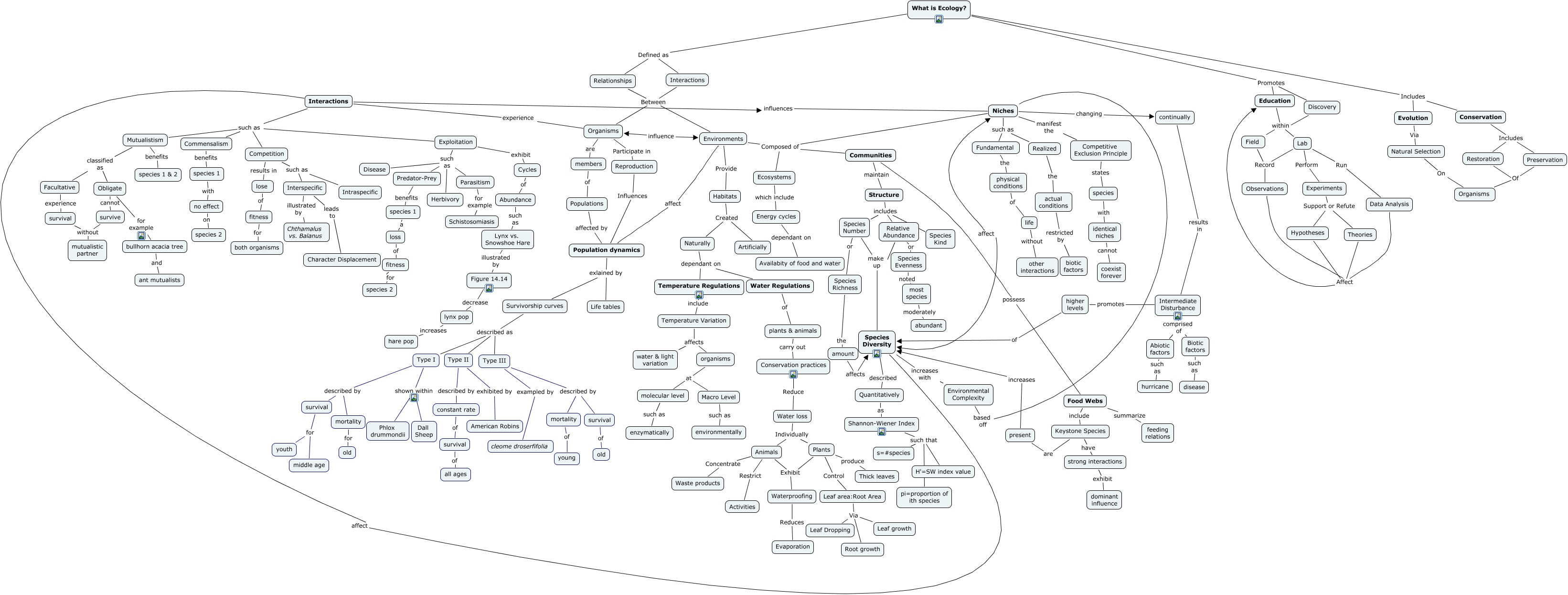 This Concept Map, created with IHMC CmapTools, has information related to: Sara & Lacie final final, Natural Selection On Organisms, Competitive Exclusion Principle states species, Conservation Includes Preservation, Interactions Between Organisms, Education within Lab, lynx pop increases hare pop, Preservation Of Organisms, Animals Concentrate Waste products, Experiments Support or Refute Hypotheses, Type II described by constant rate, Reproduction Influences Population dynamics, species 1 a loss, Environments Composed of Niches, plants & animals carry out Conservation practices, survival for youth, Survivorship curves described as Type I, Interactions influences Niches, Organisms experience Interactions, Lab Record Observations, Interactions affect Species Diversity