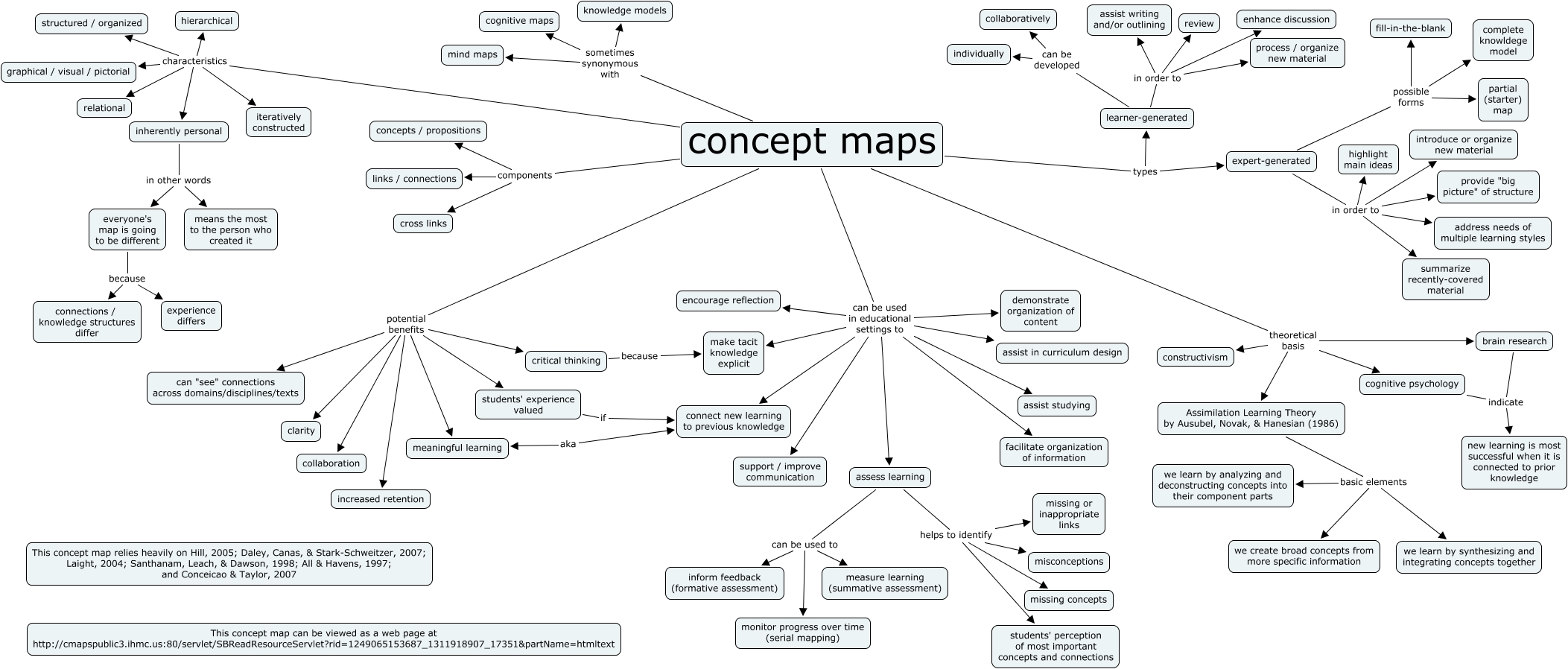 This Concept Map, created with IHMC CmapTools, has information related to: Intro to Concept Mapping, cognitive psychology indicate new learning is most successful when it is connected to prior knowledge, everyone's map is going to be different because experience differs, concept maps can be used in educational settings to assist in curriculum design, concept maps characteristics inherently personal, concept maps can be used in educational settings to demonstrate organization of content, concept maps potential benefits students' experience valued, assess learning can be used to monitor progress over time (serial mapping), concept maps characteristics hierarchical, concept maps theoretical basis brain research, concept maps components links / connections, concept maps potential benefits can "see" connections across domains/disciplines/texts, expert-generated in order to address needs of multiple learning styles, concept maps characteristics structured / organized, concept maps potential benefits increased retention, concept maps can be used in educational settings to facilitate organization of information, everyone's map is going to be different because connections / knowledge structures differ, expert-generated possible forms complete knowldege model, concept maps components concepts / propositions, concept maps sometimes synonymous with mind maps, expert-generated in order to introduce or organize new material