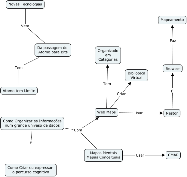 Esse mapa conceitual, produzido no IHMC CmapTools, tem a informação relacionada a: Curso Edmea Santos, Browser Faz Mapeamento, Como Organizar as Informações num grande univeso de dados Com Mapas Mentais Mapas Conceituais, Nestor É Browser, Web Maps Tem Organizado em Categorias, Mapas Mentais Mapas Conceituais Usar CMAP, Novas Tecnologias Vem Da passagem do Atomo para Bits, Como Organizar as Informações num grande univeso de dados Com Web Maps, Como Organizar as Informações num grande univeso de dados E Como Criar ou expressar o percurso cognitivo, Web Maps Criar Biblioteca Virtual, Web Maps Usar Nestor, Da passagem do Atomo para Bits Tem Atomo tem Limite