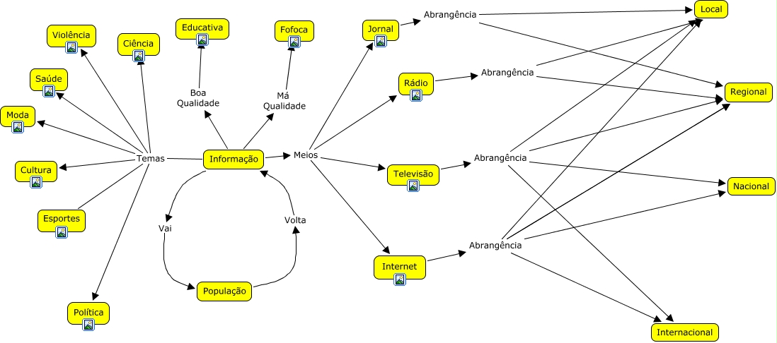 Este Mapa Conceitual tem informações relacionadas a: EricksonMapa, Televisão Abrangência Local, Informação Má Qualidade Fofoca, Informação Meios Televisão, Internet Abrangência Regional, Informação Temas Saúde, Informação Boa Qualidade Educativa, Informação Temas Violência, Televisão Abrangência Regional, Jornal Abrangência Local, Internet Abrangência Local