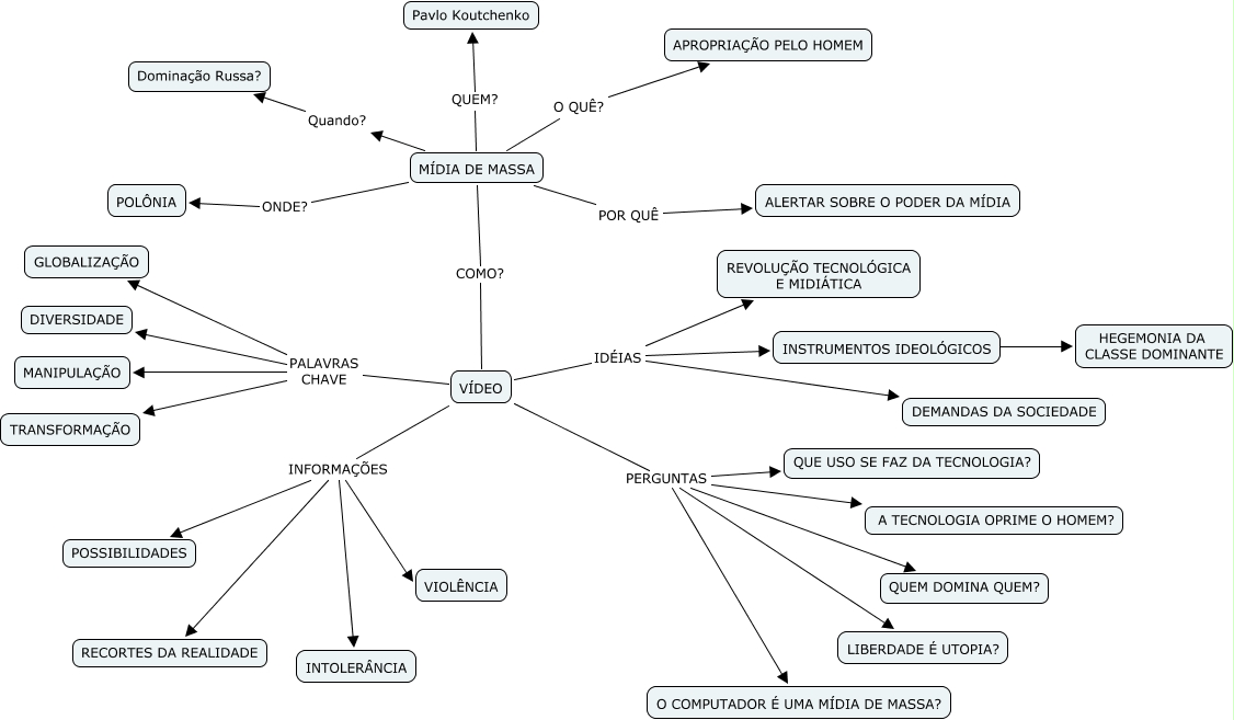 Esse mapa conceitual, produzido no IHMC CmapTools, tem a informação relacionada a: MAPA MENTAL_Carmen, VÍDEO PALAVRAS CHAVE TRANSFORMAÇÃO, VÍDEO PALAVRAS CHAVE MANIPULAÇÃO, VÍDEO PALAVRAS CHAVE GLOBALIZAÇÃO, VÍDEO INFORMAÇÕES POSSIBILIDADES, VÍDEO PERGUNTAS QUEM DOMINA QUEM?, VÍDEO PERGUNTAS O COMPUTADOR É UMA MÍDIA DE MASSA?, VÍDEO INFORMAÇÕES VIOLÊNCIA, MÍDIA DE MASSA COMO? VÍDEO, VÍDEO PALAVRAS CHAVE DIVERSIDADE, MÍDIA DE MASSA Quando? Dominação Russa?, VÍDEO INFORMAÇÕES INTOLERÂNCIA, INSTRUMENTOS IDEOLÓGICOS HEGEMONIA DA CLASSE DOMINANTE, VÍDEO IDÉIAS REVOLUÇÃO TECNOLÓGICA E MIDIÁTICA, MÍDIA DE MASSA POR QUÊ ALERTAR SOBRE O PODER DA MÍDIA, MÍDIA DE MASSA QUEM? Pavlo Koutchenko, MÍDIA DE MASSA O QUÊ? APROPRIAÇÃO PELO HOMEM, VÍDEO PERGUNTAS LIBERDADE É UTOPIA?, VÍDEO IDÉIAS INSTRUMENTOS IDEOLÓGICOS, VÍDEO IDÉIAS DEMANDAS DA SOCIEDADE, MÍDIA DE MASSA ONDE? POLÔNIA