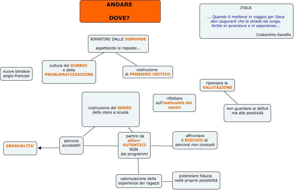 Questa Mappa Concettuale ha informazioni correlate a: picco_mattioda_RICERCA, costruzione del SENSO dello stare a scuola ???? partire da allievi AUTENTICI NON dai programmi, ripensare la VALUTAZIONE ???? non guardare ai deficit ma alle positività, partire da allievi AUTENTICI NON dai programmi ???? valorizzazione delle esperienze dei ragazzi, RIPARTIRE DALLE DOMANDE aspettando le risposte... ???? costruzione di PENSIERO CRITICO, partire da allievi AUTENTICI NON dai programmi ???? affrontare il RISCHIO di percorsi non consueti, RIPARTIRE DALLE DOMANDE aspettando le risposte... ???? cultura del DUBBIO e della PROBLEMATIZZAZIONE, valorizzazione delle esperienze dei ragazzi ???? potenziare fiducia nelle proprie possibilità, percorsi accessibili ???? partire da allievi AUTENTICI NON dai programmi, percorsi accessibili ???? GRADUALITA', costruzione del SENSO dello stare a scuola ???? percorsi accessibili