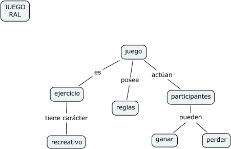 Este Cmap, tiene información relacionada con: juegoRAL, juego actúan participantes, ejercicio tiene carácter recreativo, juego posee reglas, juego es ejercicio, participantes pueden ganar, participantes pueden perder