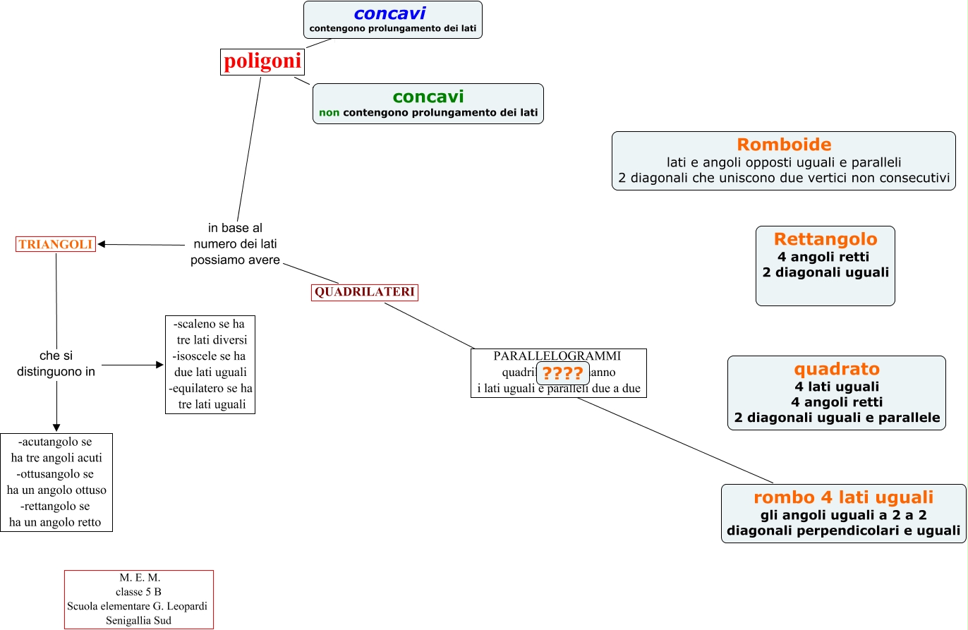 poligoni 2, TRIANGOLI che si distinguono in -scaleno se ha tre lati diversi -isoscele se ha due lati uguali -equilatero se ha tre lati uguali, TRIANGOLI che si distinguono in -acutangolo se ha tre angoli acuti -ottusangolo se ha un angolo ottuso -rettangolo se ha un angolo retto, QUADRILATERI ???? rombo 4 lati uguali gli angoli uguali a 2 a 2 diagonali perpendicolari e uguali, poligoni ???? concavi non contengono prolungamento dei lati, QUADRILATERI in base al numero dei lati possiamo avere TRIANGOLI, poligoni in base al numero dei lati possiamo avere TRIANGOLI, poligoni concavi contengono prolungamento dei lati