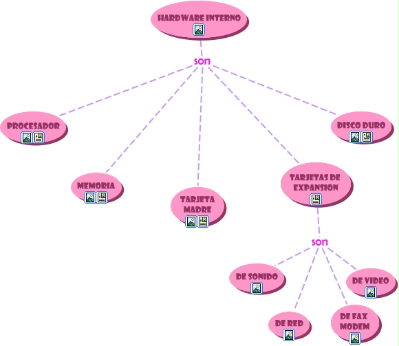 Este Cmap, tiene información relacionada con: hardware interno, HARDWARE INTERNO son TARJETA MADRE, HARDWARE INTERNO son TARJETAS DE EXPANSION, TARJETAS DE EXPANSION son DE RED, HARDWARE INTERNO son DISCO DURO, TARJETAS DE EXPANSION son DE FAX MODEM, TARJETAS DE EXPANSION son DE VIDEO, HARDWARE INTERNO son MEMORIA, TARJETAS DE EXPANSION son DE SONIDO, HARDWARE INTERNO son PROCESADOR