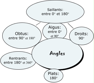 Cette carte conceptuelle, cree avec IHMC CmapTools, contient des informations liees a : ANGLES, Saillants: entre 0° et 180° Droits: 90°, Obtus: entre 90° et 180° Saillants: entre 0° et 180°