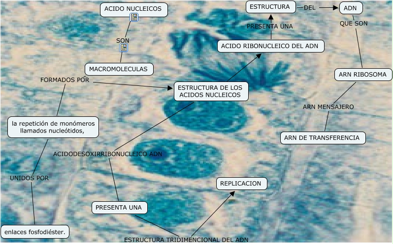 Este Cmap, tiene información relacionada con: ACIDO NUCLEICO SALLY, MACROMOLECULAS FORMADOS POR la repetición de monómeros llamados nucleótidos,, ESTRUCTURA DE LOS ACIDOS NUCLEICOS ???? ACIDO RIBONUCLEICO DEL ADN, la repetición de monómeros llamados nucleótidos, UNIDOS POR enlaces fosfodiéster., ACIDO NUCLEICOS SON MACROMOLECULAS, ESTRUCTURA DE LOS ACIDOS NUCLEICOS ACIDODESOXIRRIBONUCLEICO ADN PRESENTA UNA, ADN QUE SON ARN RIBOSOMA, ESTRUCTURA DEL ADN, ARN RIBOSOMA ARN MENSAJERO ARN DE TRANSFERENCIA, ACIDO RIBONUCLEICO DEL ADN PRESENTA UNA ESTRUCTURA, PRESENTA UNA ESTRUCTURA TRIDIMENCIONAL DEL ADN REPLICACION, MACROMOLECULAS FORMADOS POR ESTRUCTURA DE LOS ACIDOS NUCLEICOS