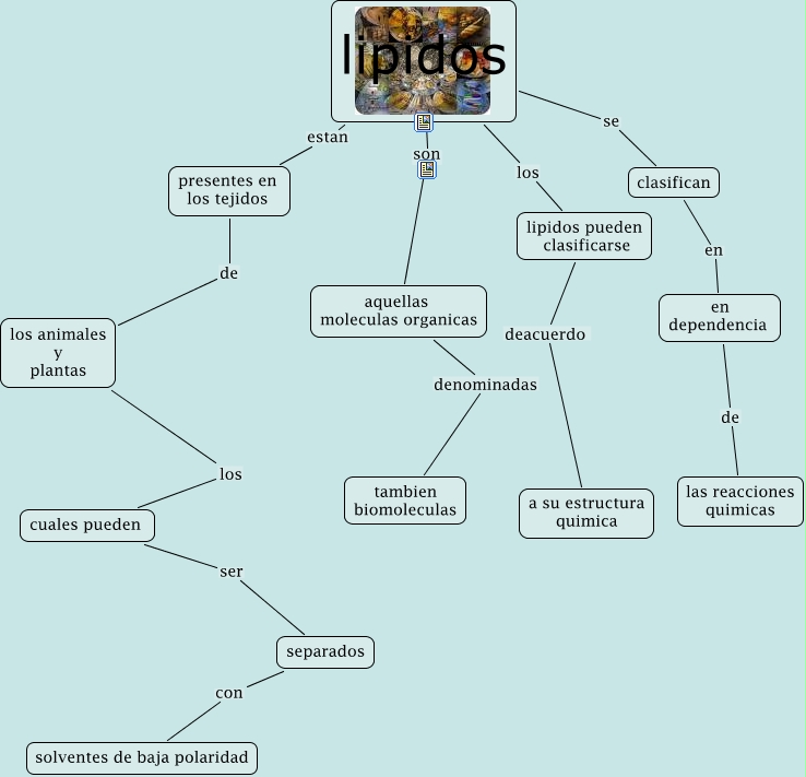 Este Cmap, tiene información relacionada con: sally lipidos, aquellas moleculas organicas denominadas tambien biomoleculas, clasifican en en dependencia, separados con solventes de baja polaridad, los animales y plantas los cuales pueden, lipidos los lipidos pueden clasificarse, en dependencia de las reacciones quimicas, lipidos se clasifican, lipidos estan presentes en los tejidos, lipidos pueden clasificarse deacuerdo a su estructura quimica, presentes en los tejidos de los animales y plantas, cuales pueden ser separados, lipidos son aquellas moleculas organicas