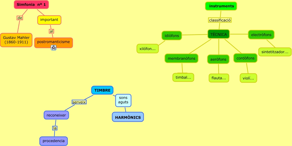 Este Cmap, tiene información relacionada con: tema 4 simf nº1 , instruments, electròfons ???? sintetitzador..., reconeixer la procedencia, TIMBRE ???? sons aguts, instruments classificació TÈCNICA, membranòfons ???? timbal..., TÈCNICA ???? membranòfons, Simfonia nº 1 de Gustav Mahler (1860-1911), TÈCNICA ???? cordòfons, TÈCNICA ???? electròfons, idiòfons ???? xilófon..., cordòfons ???? violí..., aeròfons ???? flauta..., important al postromanticisme, TÈCNICA ???? aeròfons, TIMBRE serveix reconeixer, TÈCNICA ???? idiòfons, sons aguts ???? HARMÒNICS, Simfonia nº 1 ???? important