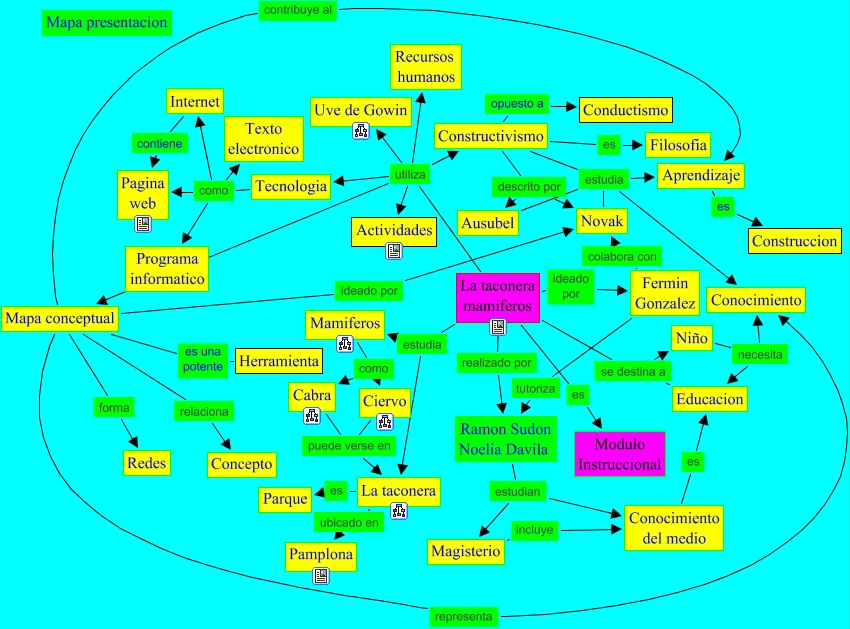 Este Cmap, tiene información relacionada con: constructivismo, La taconera mamiferos utiliza Mapa conceptual, Magisterio incluye Conocimiento del medio, Niño necesita Educacion, La taconera es Parque, Mapa conceptual ideado por Novak, La taconera mamiferos utiliza Uve de Gowin, Fermin Gonzalez tutoriza Ramon Sudon Noelia Davila, Cabra puede verse en La taconera, Constructivismo estudia Conocimiento, La taconera mamiferos utiliza Tecnologia, Aprendizaje es Construccion, Tecnologia como Pagina web, La taconera mamiferos utiliza Recursos humanos, Novak estudia Aprendizaje, Mapa conceptual contribuye al Aprendizaje, Mapa conceptual representa Conocimiento, La taconera mamiferos utiliza Constructivismo, Mapa conceptual relaciona Concepto, Constructivismo opuesto a Conductismo, Mapa conceptual es una potente Herramienta