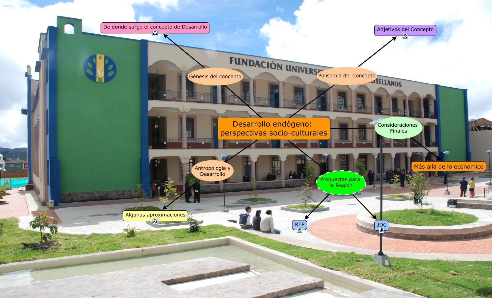 Este Cmap, tiene información relacionada con: Presentación, Desarrollo endógeno: perspectivas socio-culturales Génesis del concepto De donde surge el concepto de Desarrollo, Desarrollo endógeno: perspectivas socio-culturales Consideraciones Finales Más allá de lo económico, Desarrollo endógeno: perspectivas socio-culturales Propuestas para la Región REP, Desarrollo endógeno: perspectivas socio-culturales Antropología y Desarrollo Algunas aproximaciones, Desarrollo endógeno: perspectivas socio-culturales Propuestas para la Región JDC, Desarrollo endógeno: perspectivas socio-culturales Polisemia del Concepto Adjetivos del Concepto