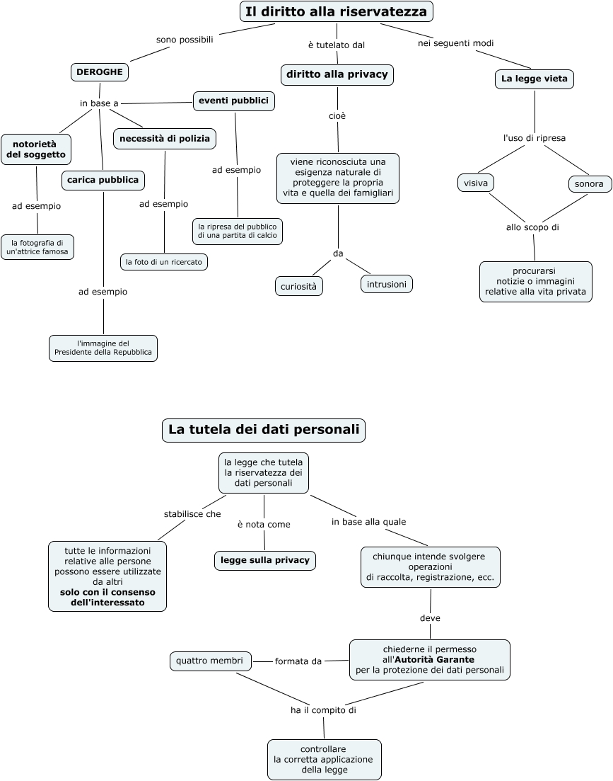 Questa Cmap, creata con IHMC CmapTools, contiene informazioni relative a: la tutela dei dati personali, quattro membri ha il compito di chiederne il permesso all'Autorità Garante per la protezione dei dati personali, quattro membri formata da chiederne il permesso all'Autorità Garante per la protezione dei dati personali, Il diritto alla riservatezza è tutelato dal diritto alla privacy, Il diritto alla riservatezza nei seguenti modi La legge vieta, Il diritto alla riservatezza sono possibili DEROGHE, diritto alla privacy cioè viene riconosciuta una esigenza naturale di proteggere la propria vita e quella dei famigliari, visiva allo scopo di sonora, quattro membri ha il compito di controllare la corretta applicazione della legge, DEROGHE in base a carica pubblica, necessità di polizia ad esempio la foto di un ricercato, notorietà del soggetto ad esempio la fotografia di un'attrice famosa, la legge che tutela la riservatezza dei dati personali è nota come legge sulla privacy, DEROGHE in base a eventi pubblici, DEROGHE in base a necessità di polizia, DEROGHE in base a notorietà del soggetto, viene riconosciuta una esigenza naturale di proteggere la propria vita e quella dei famigliari da intrusioni, La legge vieta l'uso di ripresa visiva, visiva allo scopo di procurarsi notizie o immagini relative alla vita privata, la legge che tutela la riservatezza dei dati personali in base alla quale chiunque intende svolgere operazioni di raccolta, registrazione, ecc., viene riconosciuta una esigenza naturale di proteggere la propria vita e quella dei famigliari da curiosità