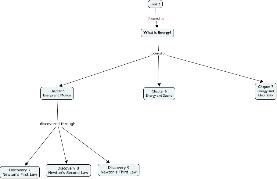 This Concept Map, created with IHMC CmapTools, has information related to: Unit 3 - What is Energy, What is Energy? focused on Chapter 6 Energy and Sound, Chapter 5 Energy and Motion discovered through Discovery 9 Newton's Third Law, Chapter 5 Energy and Motion discovered through Discovery 7 Newton's First Law, Chapter 5 Energy and Motion discovered through Discovery 8 Newton's Second Law, What is Energy? focused on Chapter 7 Energy and Electricity, What is Energy? focused on Chapter 5 Energy and Motion, Unit 2 focused on What is Energy?