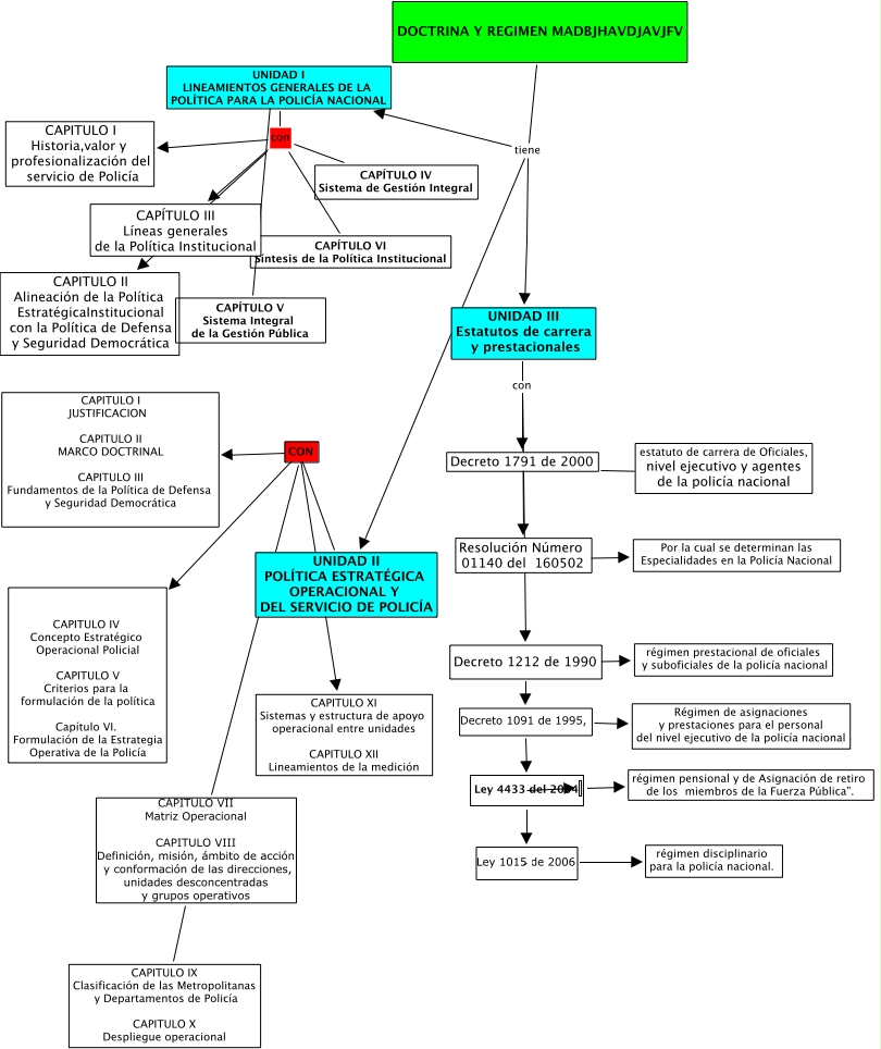 Este Cmap, tiene información relacionada con: POLI, Ley 4433 del 2004 régimen pensional y de Asignación de retiro de los miembros de la Fuerza Pública”., UNIDAD II POLÍTICA ESTRATÉGICA OPERACIONAL Y DEL SERVICIO DE POLICÍA con CAPITULO IV Concepto Estratégico Operacional Policial CAPITULO V Criterios para la formulación de la política Capítulo VI. Formulación de la Estrategia Operativa de la Policía, Decreto 1212 de 1990 Decreto 1091 de 1995, Régimen de asignaciones y prestaciones para el personal del nivel ejecutivo de la policía nacional, DOCTRINA Y REGIMEN MADBJHAVDJAVJFV tiene UNIDAD II POLÍTICA ESTRATÉGICA OPERACIONAL Y DEL SERVICIO DE POLICÍA, Ley 4433 del 2004 Ley 1015 de 2006, UNIDAD II POLÍTICA ESTRATÉGICA OPERACIONAL Y DEL SERVICIO DE POLICÍA con CAPITULO XI Sistemas y estructura de apoyo operacional entre unidades CAPITULO XII Lineamientos de la medición, Decreto 1212 de 1990 Decreto 1091 de 1995, Ley 4433 del 2004, DOCTRINA Y REGIMEN MADBJHAVDJAVJFV tiene UNIDAD I LINEAMIENTOS GENERALES DE LA POLÍTICA PARA LA POLICÍA NACIONAL, UNIDAD II POLÍTICA ESTRATÉGICA OPERACIONAL Y DEL SERVICIO DE POLICÍA con CAPITULO I JUSTIFICACION CAPITULO II MARCO DOCTRINAL CAPITULO III Fundamentos de la Política de Defensa y Seguridad Democrática, Decreto 1791 de 2000 ???? estatuto de carrera de Oficiales, nivel ejecutivo y agentes de la policía nacional, UNIDAD III Estatutos de carrera y prestacionales con Decreto 1212 de 1990, DOCTRINA Y REGIMEN MADBJHAVDJAVJFV tiene UNIDAD III Estatutos de carrera y prestacionales, Ley 4433 del 2004 Ley 1015 de 2006 régimen disciplinario para la policía nacional., UNIDAD I LINEAMIENTOS GENERALES DE LA POLÍTICA PARA LA POLICÍA NACIONAL con CAPITULO I Historia,valor y profesionalización del servicio de Policía, UNIDAD I LINEAMIENTOS GENERALES DE LA POLÍTICA PARA LA POLICÍA NACIONAL con CAPITULO II Alineación de la Política EstratégicaInstitucional con la Política de Defensa y Seguridad Democrática, UNIDAD III Estatutos de carrera y prestacionales con Decreto 1791 de 2000, Decreto 1212 de 1990 ???? régimen prestacional de oficiales y suboficiales de la policía nacional, UNIDAD I LINEAMIENTOS GENERALES DE LA POLÍTICA PARA LA POLICÍA NACIONAL con CAPÍTULO IV Sistema de Gestión Integral, ???? CAPÍTULO V Sistema Integral de la Gestión Pública, UNIDAD I LINEAMIENTOS GENERALES DE LA POLÍTICA PARA LA POLICÍA NACIONAL con CAPÍTULO VI Síntesis de la Política Institucional