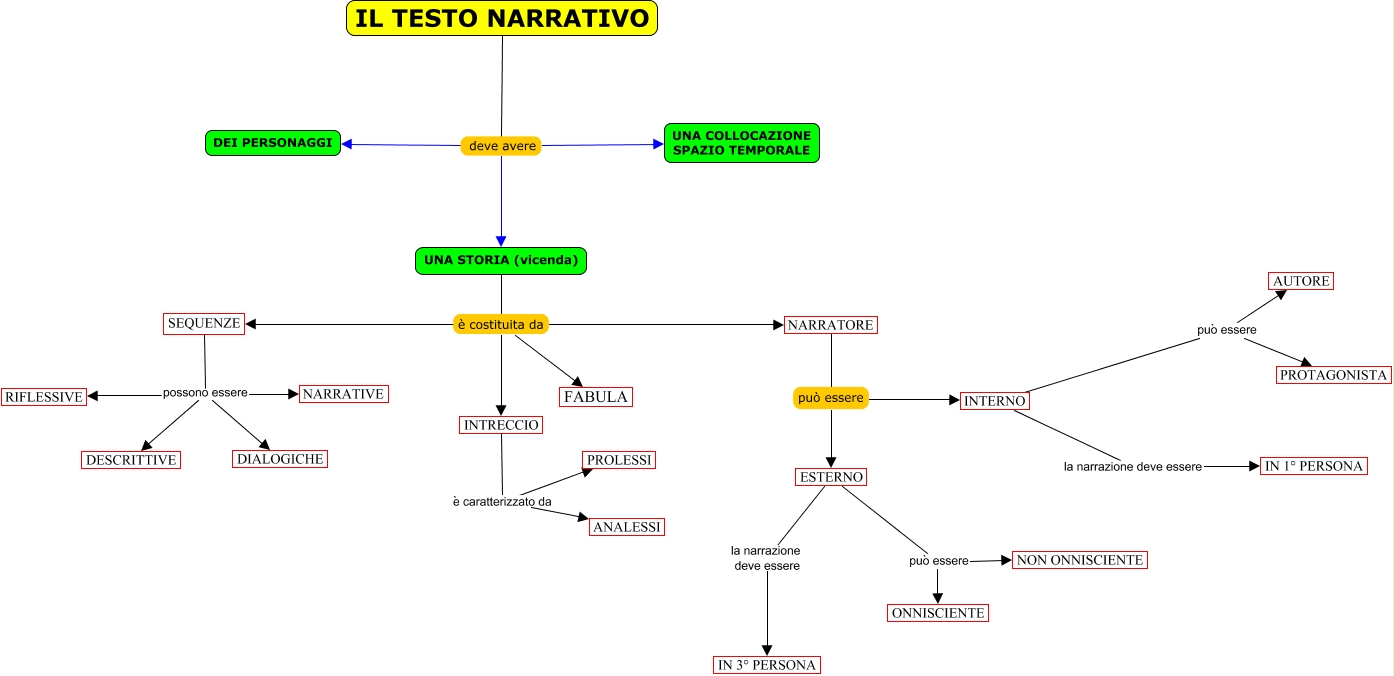 Questa Cmap, creata con IHMC CmapTools, contiene informazioni relative a: Testo narrativo, UNA STORIA (vicenda) è costituita da SEQUENZE, IL TESTO NARRATIVO deve avere DEI PERSONAGGI, IL TESTO NARRATIVO deve avere UNA COLLOCAZIONE SPAZIO TEMPORALE, UNA STORIA (vicenda) è costituita da INTRECCIO, NARRATORE può essere INTERNO, INTRECCIO è caratterizzato da ANALESSI, UNA STORIA (vicenda) è costituita da NARRATORE, SEQUENZE possono essere RIFLESSIVE, NARRATORE può essere ESTERNO, INTERNO la narrazione deve essere IN 1° PERSONA, UNA STORIA (vicenda) è costituita da FABULA, ESTERNO la narrazione deve essere IN 3° PERSONA, INTERNO può essere AUTORE, SEQUENZE possono essere NARRATIVE, INTERNO può essere PROTAGONISTA, INTRECCIO è caratterizzato da PROLESSI, ESTERNO può essere NON ONNISCIENTE, IL TESTO NARRATIVO deve avere UNA STORIA (vicenda), SEQUENZE possono essere DIALOGICHE, SEQUENZE possono essere DESCRITTIVE