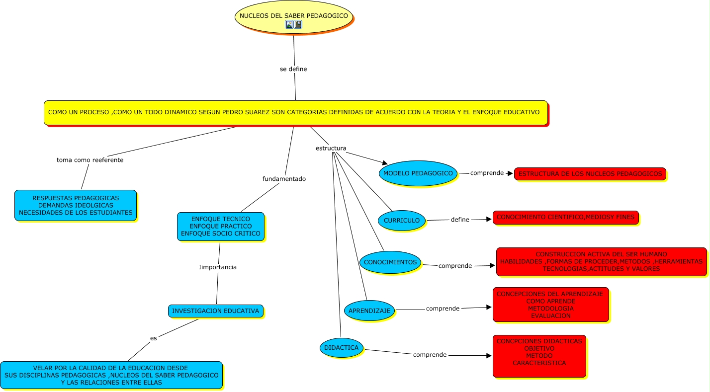 Este Cmap, tiene información relacionada con: nucleos del saber pedagogico, COMO UN PROCESO ,COMO UN TODO DINAMICO SEGUN PEDRO SUAREZ SON CATEGORIAS DEFINIDAS DE ACUERDO CON LA TEORIA Y EL ENFOQUE EDUCATIVO fundamentado ENFOQUE TECNICO ENFOQUE PRACTICO ENFOQUE SOCIO CRITICO, APRENDIZAJE comprende CONCEPCIONES DEL APRENDIZAJE COMO APRENDE METODOLOGIA EVALUACION, COMO UN PROCESO ,COMO UN TODO DINAMICO SEGUN PEDRO SUAREZ SON CATEGORIAS DEFINIDAS DE ACUERDO CON LA TEORIA Y EL ENFOQUE EDUCATIVO estructura APRENDIZAJE, COMO UN PROCESO ,COMO UN TODO DINAMICO SEGUN PEDRO SUAREZ SON CATEGORIAS DEFINIDAS DE ACUERDO CON LA TEORIA Y EL ENFOQUE EDUCATIVO estructura CURRICULO, NUCLEOS DEL SABER PEDAGOGICO se define COMO UN PROCESO ,COMO UN TODO DINAMICO SEGUN PEDRO SUAREZ SON CATEGORIAS DEFINIDAS DE ACUERDO CON LA TEORIA Y EL ENFOQUE EDUCATIVO, CURRICULO define CONOCIMIENTO CIENTIFICO,MEDIOSY FINES, CONOCIMIENTOS comprende CONSTRUCCION ACTIVA DEL SER HUMANO HABILIDADES ,FORMAS DE PROCEDER,METODOS ,HERRAMIENTAS TECNOLOGIAS,ACTITUDES Y VALORES, COMO UN PROCESO ,COMO UN TODO DINAMICO SEGUN PEDRO SUAREZ SON CATEGORIAS DEFINIDAS DE ACUERDO CON LA TEORIA Y EL ENFOQUE EDUCATIVO toma como reeferente RESPUESTAS PEDAGOGICAS DEMANDAS IDEOLGICAS NECESIDADES DE LOS ESTUDIANTES, COMO UN PROCESO ,COMO UN TODO DINAMICO SEGUN PEDRO SUAREZ SON CATEGORIAS DEFINIDAS DE ACUERDO CON LA TEORIA Y EL ENFOQUE EDUCATIVO estructura DIDACTICA, COMO UN PROCESO ,COMO UN TODO DINAMICO SEGUN PEDRO SUAREZ SON CATEGORIAS DEFINIDAS DE ACUERDO CON LA TEORIA Y EL ENFOQUE EDUCATIVO estructura MODELO PEDAGOGICO, DIDACTICA comprende CONCPCIONES DIDACTICAS OBJETIVO METODO CARACTERISTICA, ENFOQUE TECNICO ENFOQUE PRACTICO ENFOQUE SOCIO CRITICO Iimportancia INVESTIGACION EDUCATIVA, INVESTIGACION EDUCATIVA es VELAR POR LA CALIDAD DE LA EDUCACION DESDE SUS DISCIPLINAS PEDAGOGICAS ,NUCLEOS DEL SABER PEDAGOGICO Y LAS RELACIONES ENTRE ELLAS, MODELO PEDAGOGICO comprende ESTRUCTURA DE LOS NUCLEOS PEDAGOGICOS, COMO UN PROCESO ,COMO UN TODO DINAMICO SEGUN PEDRO SUAREZ SON CATEGORIAS DEFINIDAS DE ACUERDO CON LA TEORIA Y EL ENFOQUE EDUCATIVO estructura CONOCIMIENTOS