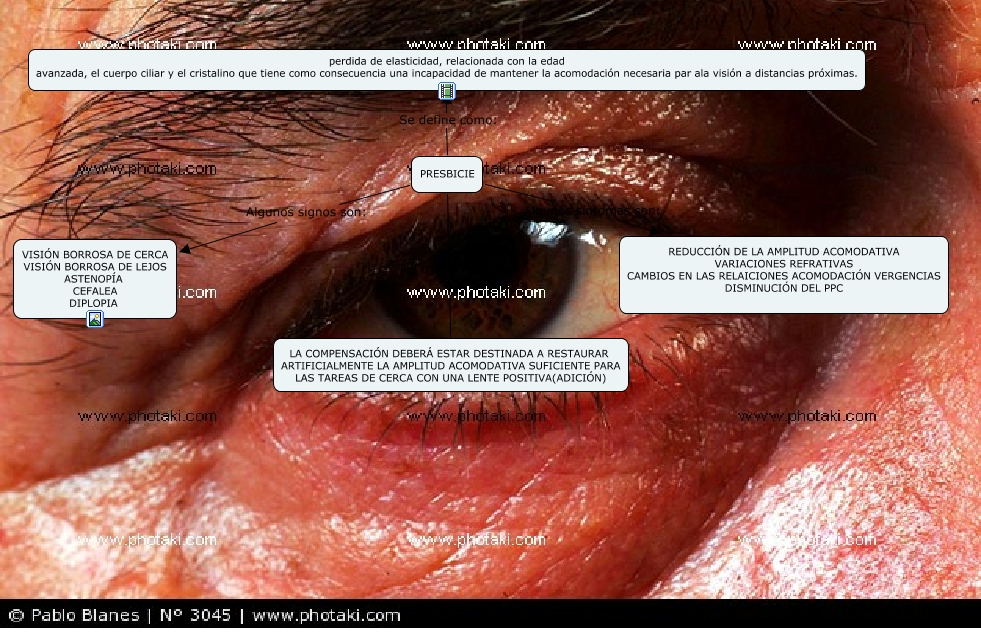 Este Cmap, tiene información relacionada con: GALVANDIAZESTEPHANIA3TM1PRESBICIE, PRESBICIE Se define como: perdida de elasticidad, relacionada con la edad avanzada, el cuerpo ciliar y el cristalino que tiene como consecuencia una incapacidad de mantener la acomodación necesaria par ala visión a distancias próximas., PRESBICIE El tratamiento LA COMPENSACIÓN DEBERÁ ESTAR DESTINADA A RESTAURAR ARTIFICIALMENTE LA AMPLITUD ACOMODATIVA SUFICIENTE PARA LAS TAREAS DE CERCA CON UNA LENTE POSITIVA(ADICIÓN), PRESBICIE Algunos síntomas son: REDUCCIÓN DE LA AMPLITUD ACOMODATIVA VARIACIONES REFRATIVAS CAMBIOS EN LAS RELAICIONES ACOMODACIÓN VERGENCIAS DISMINUCIÓN DEL PPC, PRESBICIE Algunos signos son: VISIÓN BORROSA DE CERCA VISIÓN BORROSA DE LEJOS ASTENOPÍA CEFALEA DIPLOPIA