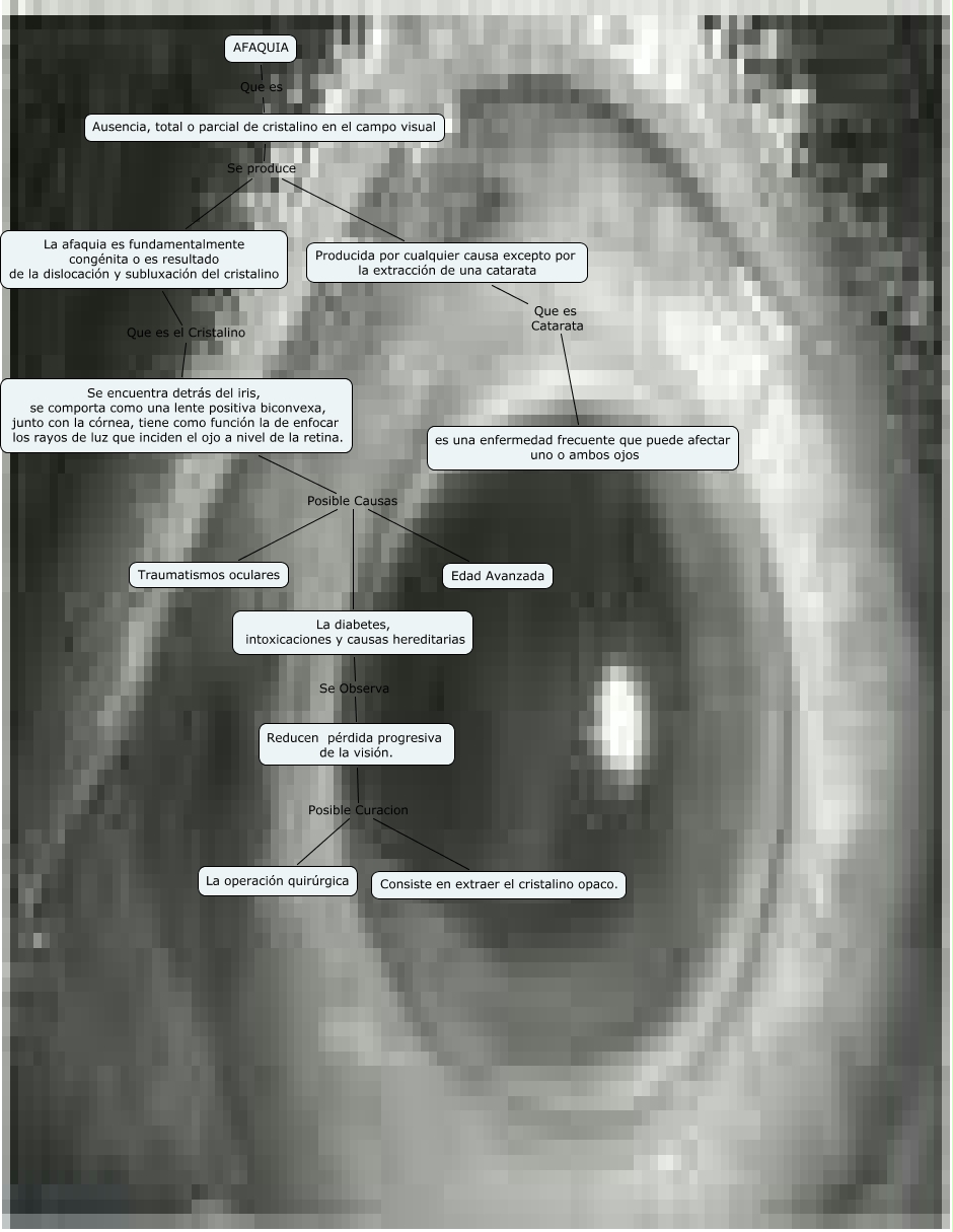 Este Cmap, tiene información relacionada con: AfaquíaIngridMynoruGarciaAguilar3tm1, AFAQUIA Que es Ausencia, total o parcial de cristalino en el campo visual, Se encuentra detrás del iris, se comporta como una lente positiva biconvexa, junto con la córnea, tiene como función la de enfocar los rayos de luz que inciden el ojo a nivel de la retina. Posible Causas Traumatismos oculares, Ausencia, total o parcial de cristalino en el campo visual Se produce Producida por cualquier causa excepto por la extracción de una catarata, Ausencia, total o parcial de cristalino en el campo visual Se produce La afaquia es fundamentalmente congénita o es resultado de la dislocación y subluxación del cristalino, Se encuentra detrás del iris, se comporta como una lente positiva biconvexa, junto con la córnea, tiene como función la de enfocar los rayos de luz que inciden el ojo a nivel de la retina. Posible Causas Edad Avanzada, Se encuentra detrás del iris, se comporta como una lente positiva biconvexa, junto con la córnea, tiene como función la de enfocar los rayos de luz que inciden el ojo a nivel de la retina. Posible Causas La diabetes, intoxicaciones y causas hereditarias, La afaquia es fundamentalmente congénita o es resultado de la dislocación y subluxación del cristalino Que es el Cristalino Se encuentra detrás del iris, se comporta como una lente positiva biconvexa, junto con la córnea, tiene como función la de enfocar los rayos de luz que inciden el ojo a nivel de la retina., La diabetes, intoxicaciones y causas hereditarias Se Observa Reducen pérdida progresiva de la visión., Reducen pérdida progresiva de la visión. Posible Curacion La operación quirúrgica, Reducen pérdida progresiva de la visión. Posible Curacion Consiste en extraer el cristalino opaco., Producida por cualquier causa excepto por la extracción de una catarata Que es Catarata es una enfermedad frecuente que puede afectar uno o ambos ojos