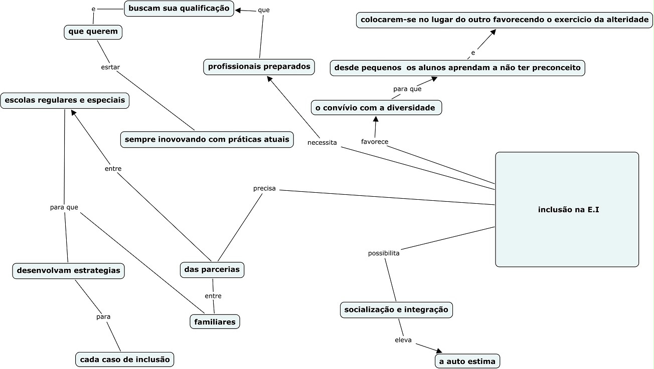 Esse mapa conceitual, produzido no IHMC CmapTools, tem a informação relacionada a: inclusão na E.I