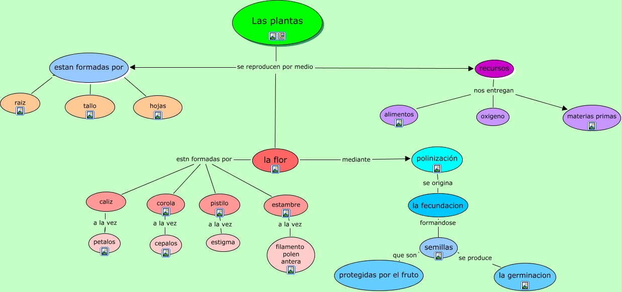 Este Cmap, tiene información relacionada con: las plantas, semillas que son protegidas por el fruto, alimentos nos entregan materias primas, estan formadas por 1ro raiz, recursos nos entregan oxigeno, polinización se origina la fecundacion, estan formadas por 2do tallo, pistilo a la vez estigma, la flor estn formadas por pistilo, la flor estn formadas por caliz, la flor estn formadas por corola, estambre a la vez filamento polen antera, Las plantas se reproducen por medio recursos, la flor estn formadas por estambre, caliz a la vez petalos, la fecundacion formandose semillas, Las plantas se reproducen por medio estan formadas por, la flor mediante polinización, semillas se produce la germinacion, alimentos nos entregan oxigeno, corola a la vez cepalos