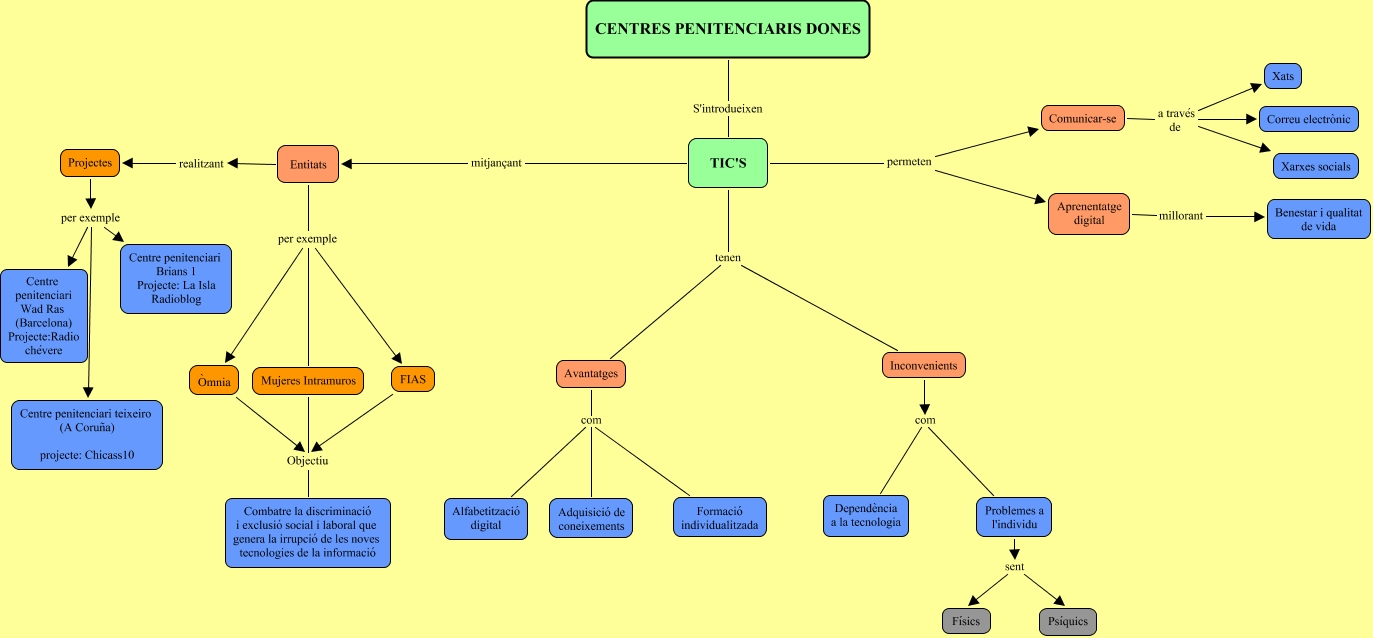 Este Cmap, tiene información relacionada con: Sin Título 2, Entitats per exemple FIAS, Comunicar-se a través de Xats, Avantatges com Alfabetització digital, Adquisició de coneixements com Alfabetització digital, Projectes per exemple Centre penitenciari Brians 1 Projecte: La Isla Radioblog, Entitats per exemple Mujeres Intramuros, Mujeres Intramuros Objectiu Combatre la discriminació i exclusió social i laboral que genera la irrupció de les noves tecnologies de la informació, TIC'S mitjançant Entitats, Problemes a l'individu sent Físics, CENTRES PENITENCIARIS DONES S'introdueixen TIC'S, TIC'S tenen Avantatges, Entitats per exemple Òmnia, Comunicar-se a través de Correu electrònic, Problemes a l'individu com Dependència a la tecnologia, Comunicar-se a través de Xarxes socials, FIAS Objectiu Combatre la discriminació i exclusió social i laboral que genera la irrupció de les noves tecnologies de la informació, Inconvenients com Dependència a la tecnologia, Problemes a l'individu sent Psíquics, Aprenentatge digital millorant Benestar i qualitat de vida, Projectes per exemple Centre penitenciari Wad Ras (Barcelona) Projecte:Radio chévere