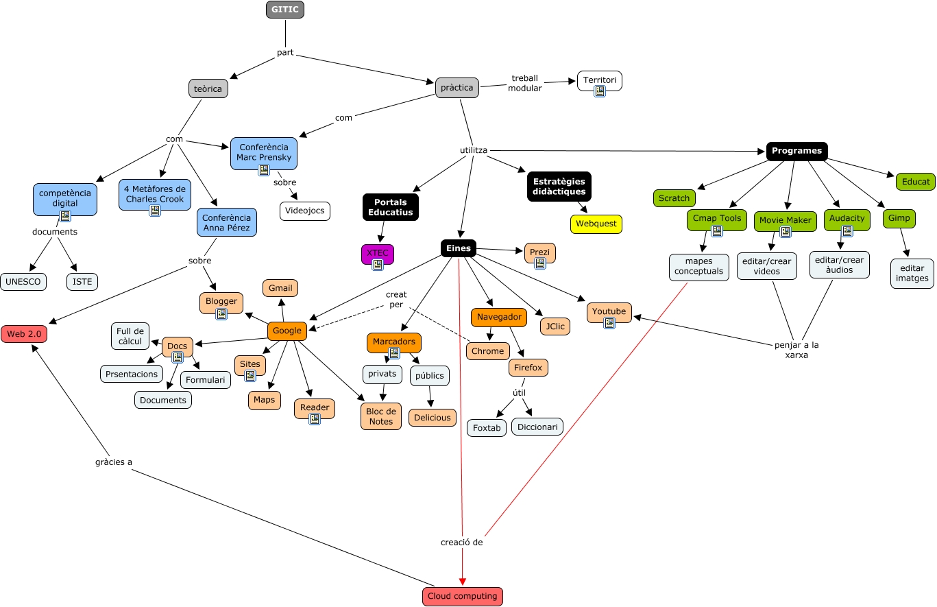 Este Cmap, tiene información relacionada con: gitic final, Google ???? Sites, Conferència Marc Prensky sobre Videojocs, mapes conceptuals creació de Cloud computing, Docs ???? Documents, Eines ???? JClic, Google ???? Blogger, Google ???? Gmail, Docs ???? Full de càlcul, competència digital documents ISTE, Navegador ???? Chrome, pràctica treball modular Territori, competència digital documents UNESCO, públics ???? Delicious, Programes Audacity Audacity, Conferència Anna Pérez sobre Blogger, editar/crear videos penjar a la xarxa Youtube, Programes ???? Educat, Firefox útil Foxtab, Eines creació de Cloud computing, teòrica com 4 Metàfores de Charles Crook