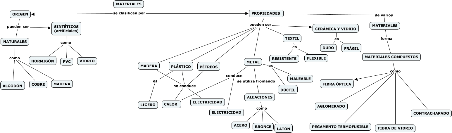 Este Cmap, tiene información relacionada con: Los materiales tema 3 bego 2, METAL conduce CALOR, MATERIALES COMPUESTOS como CONTRACHAPADO, PROPIEDADES pueden ser PLÁSTICO, MADERA no conduce ELECTRICIDAD, METAL conduce ELECTRICIDAD, CERÁMICA Y VIDRIO es DURO, NATURALES como ALGODÓN, MATERIALES COMPUESTOS como PEGAMENTO TERMOFUSIBLE, ALEACIONES como ACERO, PÉTREOS no conduce ELECTRICIDAD, MATERIALES se clasifican por ORIGEN, PLÁSTICO no conduce ELECTRICIDAD, NATURALES como COBRE, PROPIEDADES pueden ser PÉTREOS, MATERIALES COMPUESTOS como FIBRA DE VIDRIO, PROPIEDADES pueden ser METAL, METAL es MALEABLE, TEXTIL es RESISTENTE, MATERIALES forma MATERIALES COMPUESTOS, MADERA no conduce CALOR