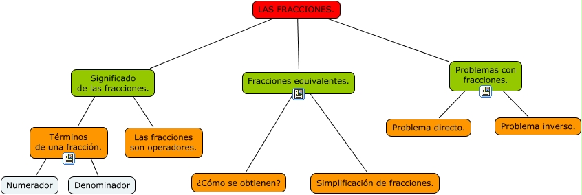 Este Cmap, tiene información relacionada con: Las fracciones I, LAS FRACCIONES. ???? Problemas con fracciones., Problemas con fracciones. ???? Problema inverso., Términos de una fracción. ???? Denominador, LAS FRACCIONES. ???? Fracciones equivalentes., Fracciones equivalentes. ???? Simplificación de fracciones., Problemas con fracciones. ???? Problema directo., Significado de las fracciones. ???? Términos de una fracción., Términos de una fracción. ???? Numerador, Fracciones equivalentes. ???? ¿Cómo se obtienen?, LAS FRACCIONES. ???? Significado de las fracciones., Significado de las fracciones. ???? Las fracciones son operadores.