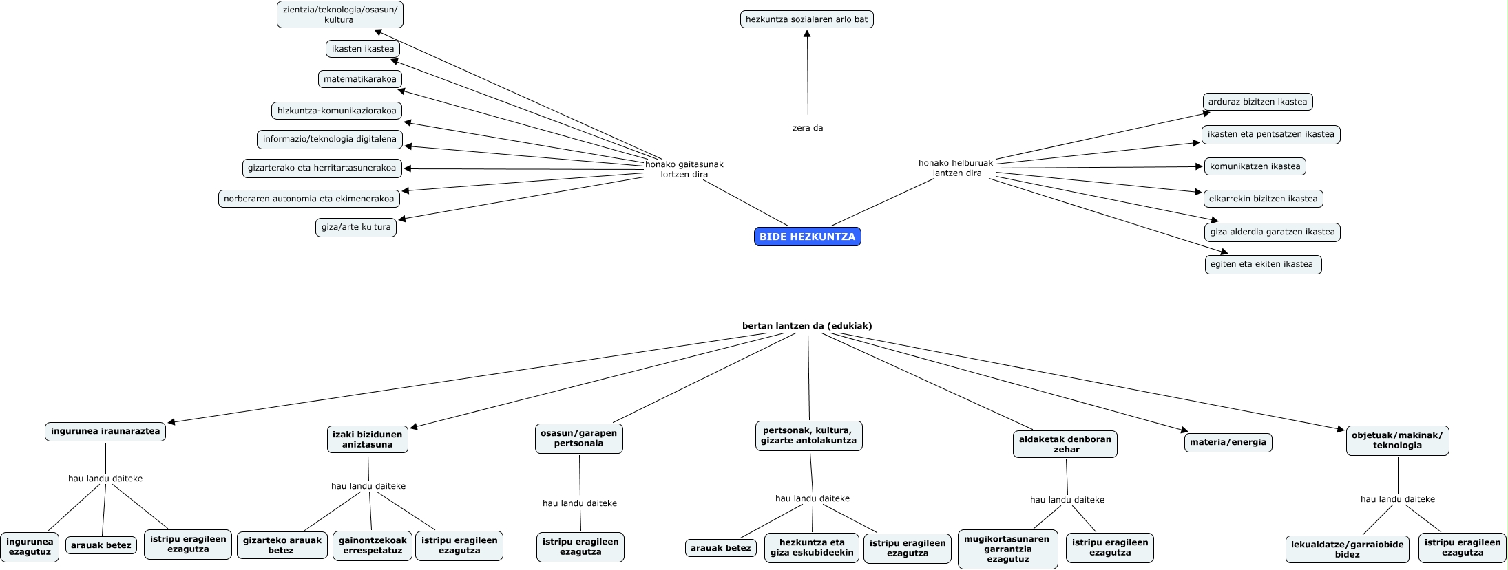 Este Cmap, tiene información relacionada con: bide hezkuntza, objetuak/makinak/ teknologia hau landu daiteke lekualdatze/garraiobide bidez, pertsonak, kultura, gizarte antolakuntza hau landu daiteke arauak betez, BIDE HEZKUNTZA honako gaitasunak lortzen dira norberaren autonomia eta ekimenerakoa, BIDE HEZKUNTZA honako gaitasunak lortzen dira matematikarakoa, BIDE HEZKUNTZA honako gaitasunak lortzen dira gizarterako eta herritartasunerakoa, BIDE HEZKUNTZA bertan lantzen da (edukiak) osasun/garapen pertsonala, ingurunea iraunaraztea hau landu daiteke ingurunea ezagutuz, pertsonak, kultura, gizarte antolakuntza hau landu daiteke istripu eragileen ezagutza, objetuak/makinak/ teknologia hau landu daiteke istripu eragileen ezagutza, BIDE HEZKUNTZA zera da hezkuntza sozialaren arlo bat, BIDE HEZKUNTZA honako helburuak lantzen dira ikasten eta pentsatzen ikastea, BIDE HEZKUNTZA bertan lantzen da (edukiak) materia/energia, izaki bizidunen aniztasuna hau landu daiteke gizarteko arauak betez, BIDE HEZKUNTZA honako helburuak lantzen dira giza alderdia garatzen ikastea, BIDE HEZKUNTZA honako helburuak lantzen dira elkarrekin bizitzen ikastea, BIDE HEZKUNTZA honako gaitasunak lortzen dira ikasten ikastea, BIDE HEZKUNTZA honako gaitasunak lortzen dira zientzia/teknologia/osasun/ kultura, BIDE HEZKUNTZA honako helburuak lantzen dira arduraz bizitzen ikastea, izaki bizidunen aniztasuna hau landu daiteke istripu eragileen ezagutza, BIDE HEZKUNTZA bertan lantzen da (edukiak) aldaketak denboran zehar