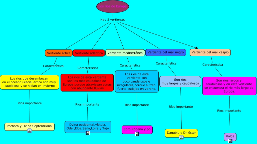 Este Cmap, tiene información relacionada con: Los rios de europa, Vertiente mediterránea Característica Los ríos de está vertiente son poco caudalosos e irregulares,porque sufren fuerte estiajes en verano., Los rios de Europa Hay 5 vertientes Vertiente mediterránea, Los rios de Europa Hay 5 vertientes Vertiente atlántica, Son ríos largos y caudalosos y en está vertiente se encuentra el rio más largo de Europa. Ríos importante Volga, Los ríos de está vertiente son poco caudalosos e irregulares,porque sufren fuerte estiajes en verano. Rios importante Ebro,Ródano y po, Vertiente del mar negro Característica Son ríos muy largos y caudalosos, Los rios de Europa Hay 5 vertientes Vertiente ártica, Los rios que desembocan en el oceáno Glacial ártico son muy caudaloso y se hielan en invierno Rios importante Pechora y Dvina Septentrional, Los rios de Europa Hay 5 vertientes Vertiente del mar negro, Son ríos muy largos y caudalosos Ríos importante Danubio y Dniéster, Los rios de Europa Hay 5 vertientes Vertiente del mar caspio, Vertiente del mar caspio Característica Son ríos largos y caudalosos y en está vertiente se encuentra el rio más largo de Europa., Vertiente ártica Característica Los rios que desembocan en el oceáno Glacial ártico son muy caudaloso y se hielan en invierno, Los rios de esta vertiente son los más caudaloso de Europa porque atraviesan zonas con abundante lluvias Ríos importante Dvina occidental,vístula, Oder,Elba,Sena,Loira y Tajo, Vertiente atlántica Característica Los rios de esta vertiente son los más caudaloso de Europa porque atraviesan zonas con abundante lluvias