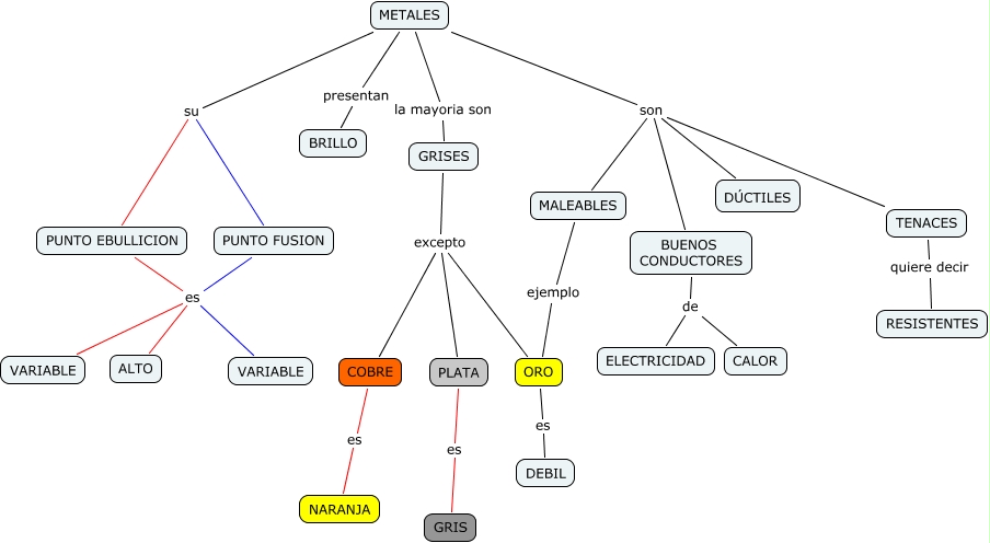 Este Cmap, tiene información relacionada con: Metales, GRISES excepto ORO, METALES son TENACES, METALES su PUNTO EBULLICION, ORO es DEBIL, MALEABLES ejemplo ORO, PUNTO FUSION es VARIABLE, PUNTO EBULLICION es VARIABLE, METALES son BUENOS CONDUCTORES, METALES son MALEABLES, COBRE es NARANJA, GRISES excepto PLATA, TENACES quiere decir RESISTENTES, BUENOS CONDUCTORES de ELECTRICIDAD, PUNTO FUSION es ALTO, METALES presentan BRILLO, PUNTO FUSION es VARIABLE, METALES son DÚCTILES, PUNTO EBULLICION es ALTO, GRISES excepto COBRE, BUENOS CONDUCTORES de CALOR