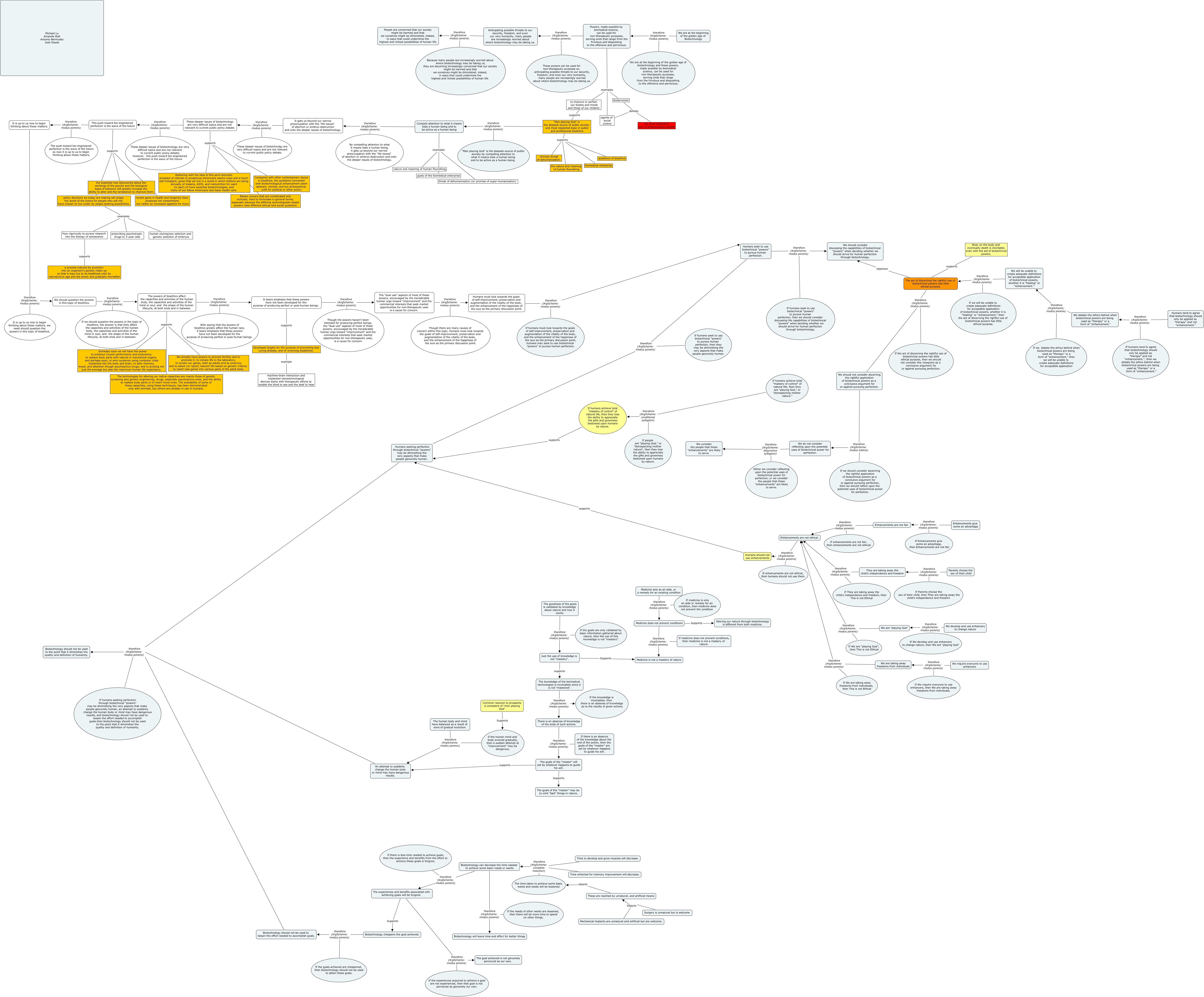 This Concept Map, created with IHMC CmapTools, has information related to: 5G Project 1 Group Map, Humans seeking perfection through biotechnical "powers" may be diminishing the very aspects that make people genuinely human. therefore (ArgScheme: modus ponens) Biotechnology should not be used to the point that it diminishes the quality and definition of humanity., If We require everyone to use enhancers, then We are taking away freedoms from individuals. therefore (ArgScheme: modus ponens) We are taking away freedoms from individuals, If we should consider dscerning the rightful application of biotechnical powers as a conclusive argument for or against pursuing perfection, then we should reflect upon the potential uses of biotechnical power for perfection. therefore (ArgScheme: modus tollens) We do not consider reflecting upon the potential uses of biotechnical power for perfection., The act of discerning the rightful use of biotechnical powers has little ethical purpose. therefore (ArgScheme: modus ponens) We should not consider dscerning the rightful application of biotechnical powers as a conclusive argument for or against pursuing perfection., There is an absense of knowledge of the ends of such actions. therefore (ArgScheme: modus ponens) The goals of the "master" will set by whatever happens to guide his will., Humans should not use enhancements supports Humans seeking perfection through biotechnical "powers" may be diminishing the very aspects that make people genuinely human., It is up to us now to begin thinking about these matters. therefore (ArgScheme: modus ponens) It is up to us now to begin thinking about these matters, we need should question the powers in this topic of bioethics., We are at the beginning of the golden age of Biotechnology therefore (ArgScheme: modus ponens) We are at the beginning of the golden age of biotechnology and these powers, made possible by biomedical science, can be used for non-therapeutic purposes, serving ends that range from the frivolous and disquieting to the offensive and pernicious., These deeper issues of biotechnology are very difficult topics and are not relevant to current public policy debate. supports Compared with other contemporary issues in bioethics, the questions connected with biotechnological enhancement seem abstract, remote, and too philosophical, unfit for political or other action., It is up to us now to begin thinking about these matters. therefore (ArgScheme: modus ponens) We should question the powers in this topic of bioethics., "Man playing God" is the deepest source of public anxiety and most neglected topic in public and professional bioethics supports the nature and meaning of human flourishing, These deeper issues of biotechnology are very difficult topics and are not relevant to current public policy debate. supports Bothering with the idea of this semi-futuristic prospect of interest to prosperous Americans seems cious and a touch self-indulgent, given that we live in a world in which millions are dying annually of malaria, AIDS, and malnutrition for want (in part) of more essential biotechnologies, and many of our fellow Americans lack basic health care., Compels attention to what it means tobe a human being and to be active as a human being therefore (ArgScheme: modus ponens) By compelling attention to what it means tobe a human being, it gets us beyond our narrow preoccupation with the "life issues" of abortion or embryo destruction and onto the deeper issues of biotechnology., These deeper issues of biotechnology are very difficult topics and are not relevant to current public policy debate. therefore (ArgScheme: modus ponens) These deeper issues of biotechnology are very difficult topics and are not relevent to current public policy debate; however, this push toward bio-engineered perfection is the wave of the future., If We are taking away freedoms from individuals, then This is not Ethical therefore (ArgScheme: modus ponens) Enhancements are not ethical., Compels attention to what it means tobe a human being and to be active as a human being examples goals of the biomedical enterprise, The powers of bioethics affect the capacities and activities of the human body, the capacities and activities of the mind or soul, and the shape of the human lifecycle, at both ends and in between. supports We already have powers to prevent fertility and to promote it; to initiate life in the laboratory; to screen our genes, both as adults and as embryos, and to select (or reject) nascent life based on genetic criteria; to insert new genes into various parts of the adult body,, These are reached by unnatural, and artificial means objects The time taken to achieve some basic wants and needs will be lessened., Enhancements are not ethical. therefore (ArgScheme: modus ponens) Humans should not use enhancements, Powers, made possible by biomedical science, can be used for non-therapeutic purposes, serving ends that range from the frivolous and disquieting to the offensive and pernicious. therefore (ArgScheme: modus ponens) These powers can be used for non-therapeutic purposes so, anticipating possible threats to our security, freedom, and even our very humanity, many people are increasingly worried about where biotechnology may be taking us.