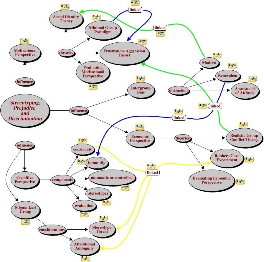 This Concept Map, created with IHMC CmapTools, has information related to: SPD, Benevolent linked immunity, Motivational Perspective theories Social Identity Theory, Economic Perspective theories Evaluating Economic Perspective, Cognitive Perspective components construals, construals linked Attribtional Ambiguity, Cognitive Perspective components automatic or controlled, Intergroup Bias distinction Modern, Cognitive Perspective components evaluation, Stereotyping, Prejudice, and Discrimination influence Stigmatized Group, construals linked Stereotype Threat, Realistic Group Conflict Theory linked Frustration-Aggression Theory, Cognitive Perspective components immunity, Motivational Perspective theories Evaluating Motivational Perspective, Intergroup Bias distinction Benevolent, Economic Perspective theories Robbers Cave Experiment, Stereotyping, Prejudice, and Discrimination influence Intergroup Bias, Stigmatized Group considerations Stereotype Threat, Motivational Perspective theories Frustration-Aggression Theory, Cognitive Perspective components stereotypes, Modern linked Social Identity Theory
