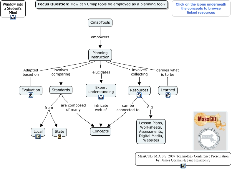 This Concept Map, created with IHMC CmapTools, has information related to: Planning Tool, Resources can be connected to Concepts, Standards from State, Standards are composed of many Concepts, Planning instruction involves collecting Resources, Planning instruction elucidates Expert understanding, Expert understanding intricate web of Concepts, Planning instruction Adapted based on Evaluation, Standards from Local, Planning instruction involves comparing Standards, CmapTools empowers Planning instruction, Resources e.g. Lesson Plans, Worksheets, Assessments, Digital Media, Websites, Planning instruction defines what is to be Learned