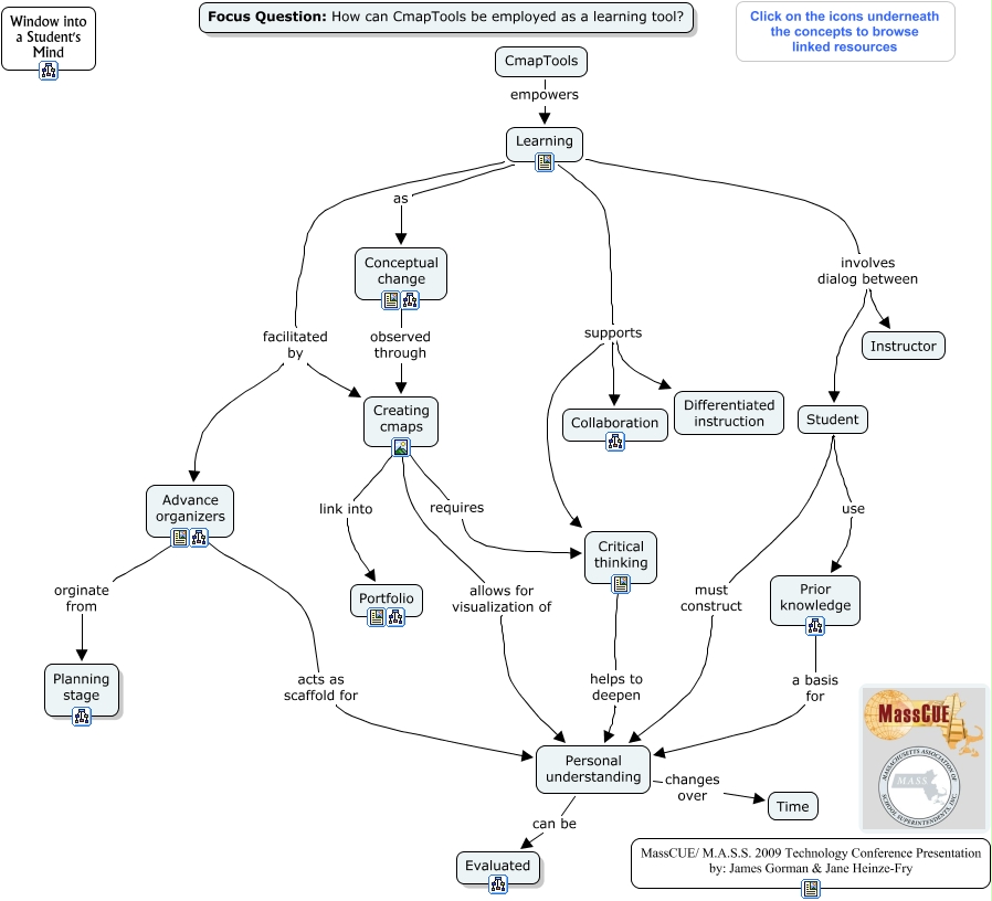 This Concept Map, created with IHMC CmapTools, has information related to: Learning tool, Learning as Conceptual change, Critical thinking helps to deepen Personal understanding, Advance organizers orginate from Planning stage, Learning facilitated by Advance organizers, Creating cmaps requires Critical thinking, Learning involves dialog between Instructor, Learning supports Critical thinking, Personal understanding can be Evaluated, Advance organizers acts as scaffold for Personal understanding, Creating cmaps allows for visualization of Personal understanding, Prior knowledge a basis for Personal understanding, CmapTools empowers Learning, Learning involves dialog between Student, Learning supports Differentiated instruction, Student use Prior knowledge, Learning facilitated by Creating cmaps, Personal understanding changes over Time, Learning supports Collaboration, Creating cmaps link into Portfolio, Conceptual change observed through Creating cmaps