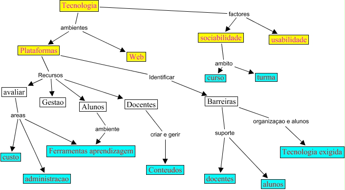 Este Cmap, tiene información relacionada con: mapa_cercat, Tecnologia ambientes Web, Plataformas Identificar Barreiras, Barreiras organizaçao e alunos Tecnologia exigida, Barreiras suporte docentes, Alunos ambiente Ferramentas aprendizagem, avaliar areas administracao, Tecnologia factores usabilidade, sociabilidade ambito turma, Barreiras suporte alunos, avaliar areas Ferramentas aprendizagem, Plataformas Recursos Gestao, avaliar areas custo, Plataformas Recursos Docentes, Plataformas Recursos avaliar, Tecnologia factores sociabilidade, Tecnologia ambientes Plataformas, sociabilidade ambito curso, Plataformas Recursos Alunos, Docentes criar e gerir Conteudos