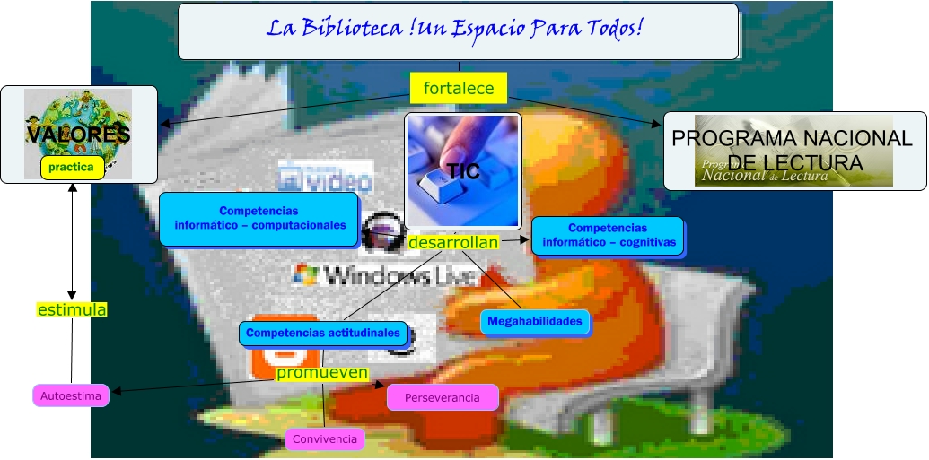 Este Cmap, tiene información relacionada con: Sin Título 1, TIC desarrollan Competencias informático – cognitivas, Competencias actitudinales promueven Autoestima, La Biblioteca !Un Espacio Para Todos! fortalece PROGRAMA NACIONAL DE LECTURA, TIC desarrollan Competencias informático – computacionales, TIC desarrollan Megahabilidades, Competencias actitudinales promueven Perseverancia, La Biblioteca !Un Espacio Para Todos! fortalece TIC, TIC desarrollan Competencias actitudinales, Competencias actitudinales promueven Convivencia, Autoestima estimula practica, La Biblioteca !Un Espacio Para Todos! fortalece VALORES