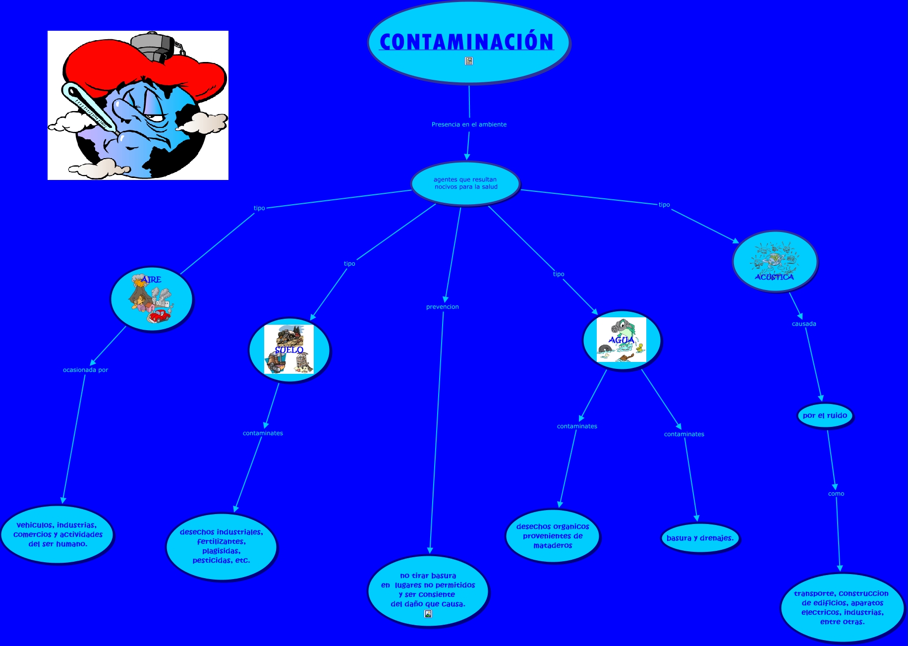 Este Cmap, tiene información relacionada con: contaminacion ambiental, CONTAMINACIÓN Presencia en el ambiente agentes que resultan nocivos para la salud, por el ruido como transporte, construccion de edificios, aparatos electricos, industrias, entre otras., AIRE ocasionada por vehiculos, industrias, comercios y actividades del ser humano., agentes que resultan nocivos para la salud prevencion no tirar basura en lugares no permitidos y ser consiente del daño que causa., agentes que resultan nocivos para la salud tipo AGUA, SUELO contaminates desechos industriales, fertilizantes, plagisidas, pesticidas, etc., agentes que resultan nocivos para la salud tipo AIRE, agentes que resultan nocivos para la salud tipo ACUSTICA, AGUA contaminates desechos organicos provenientes de mataderos, ACUSTICA causada por el ruido, agentes que resultan nocivos para la salud tipo SUELO, AGUA contaminates basura y drenajes.